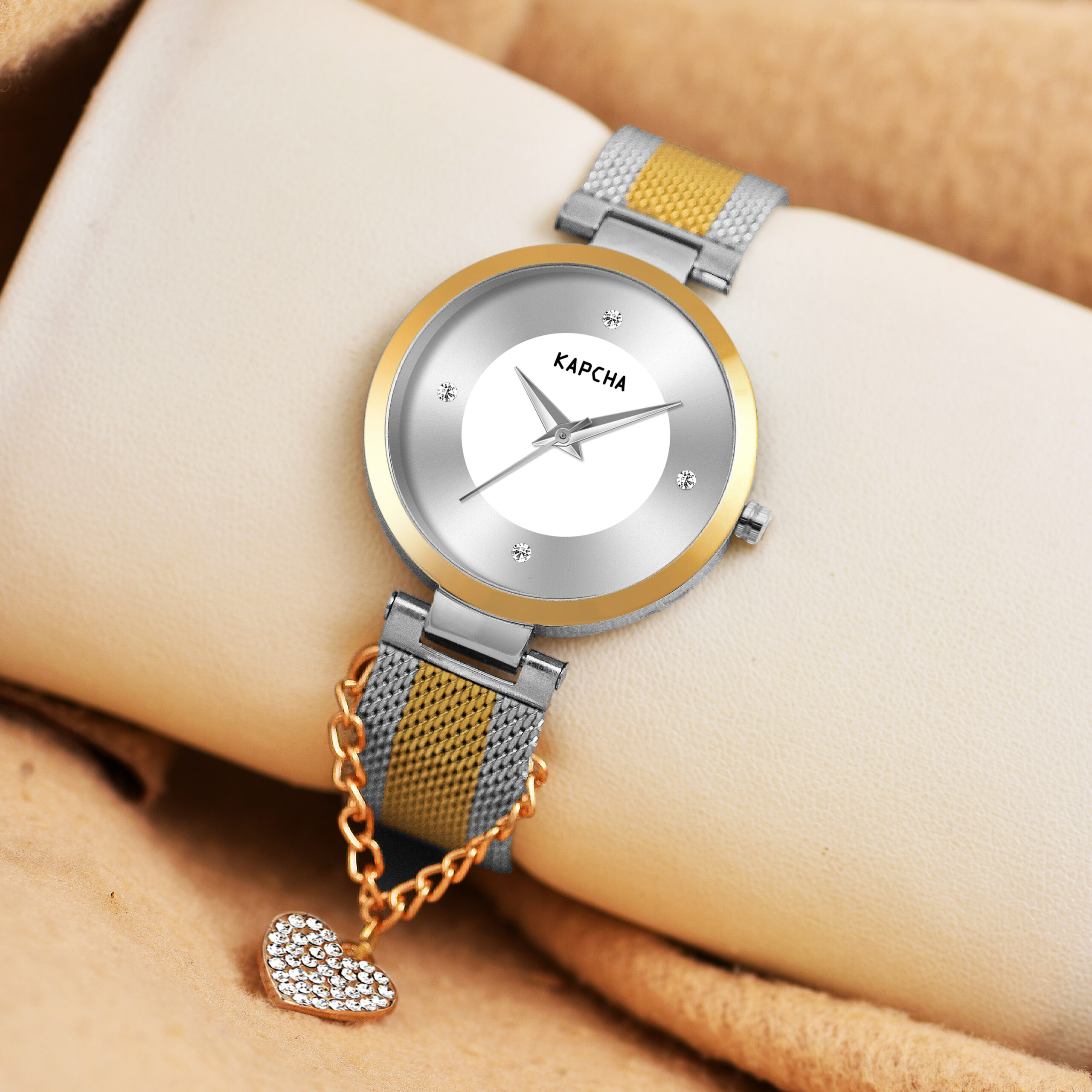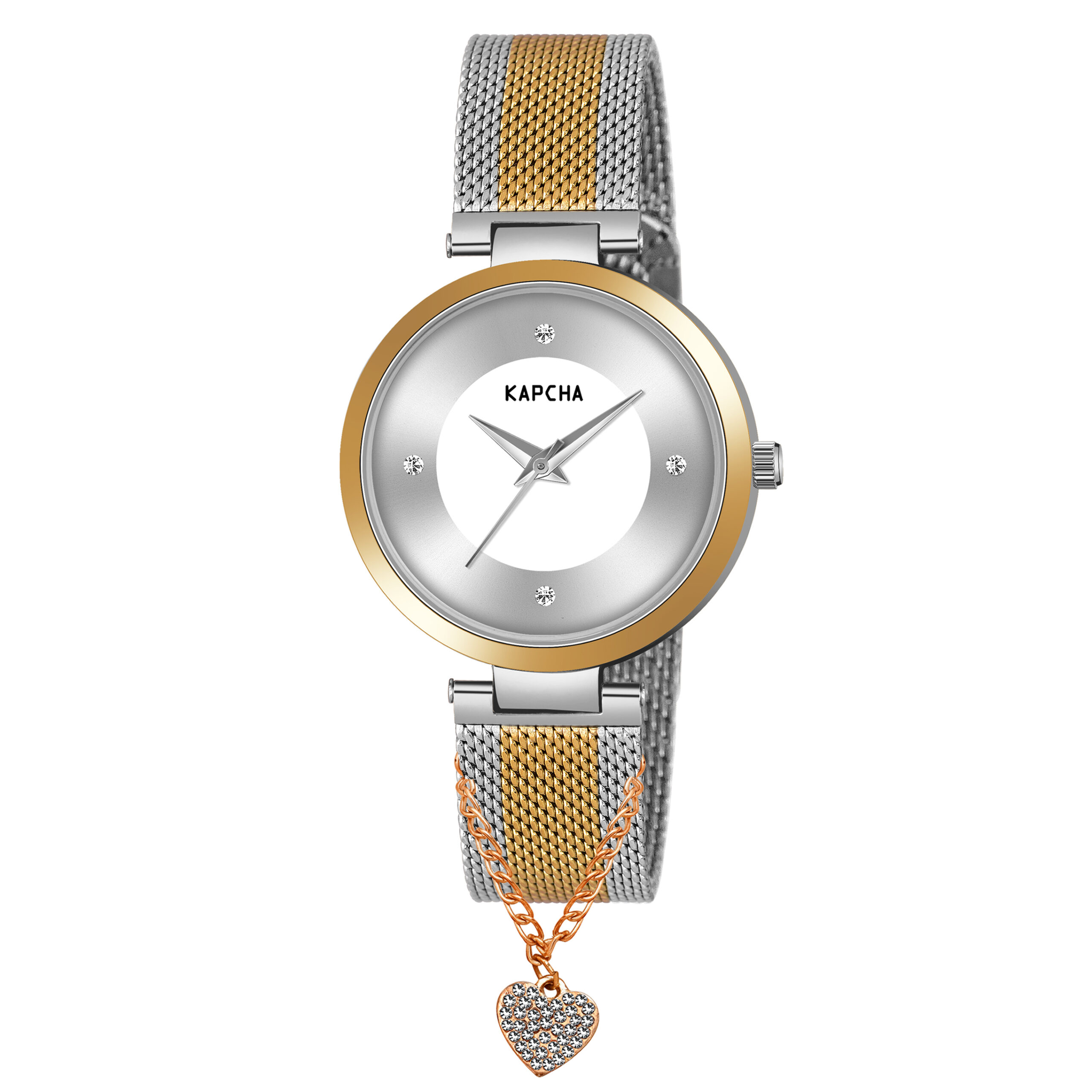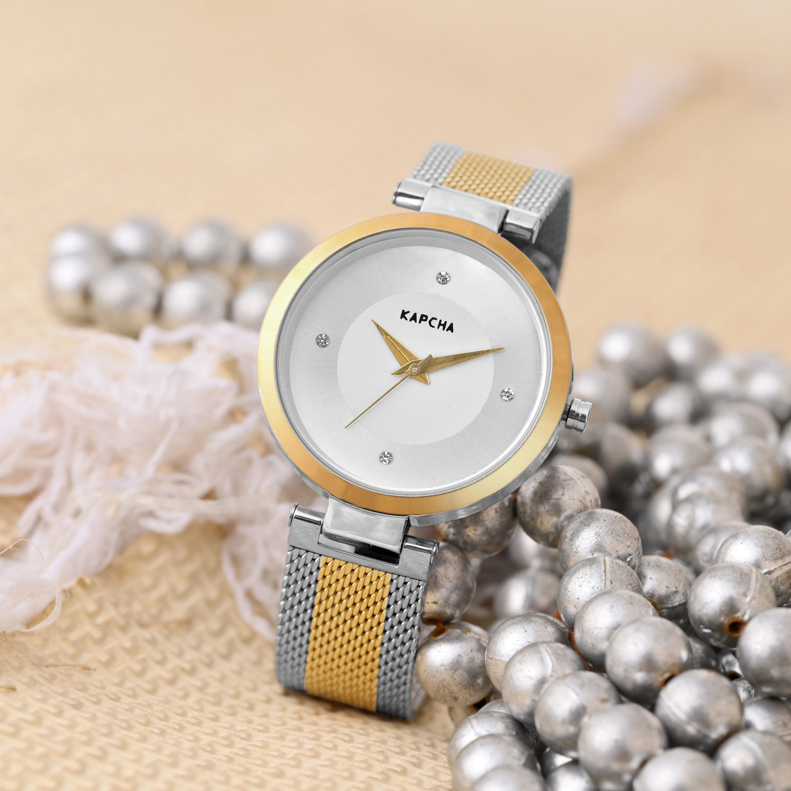 KAPCHA Elegant Stainless Steel Strap Watch with Bracelet, Fashionable Gift Combo Pack of 2, Reliable Quartz Movement, Adjustable Fit, Style for Every Occasion