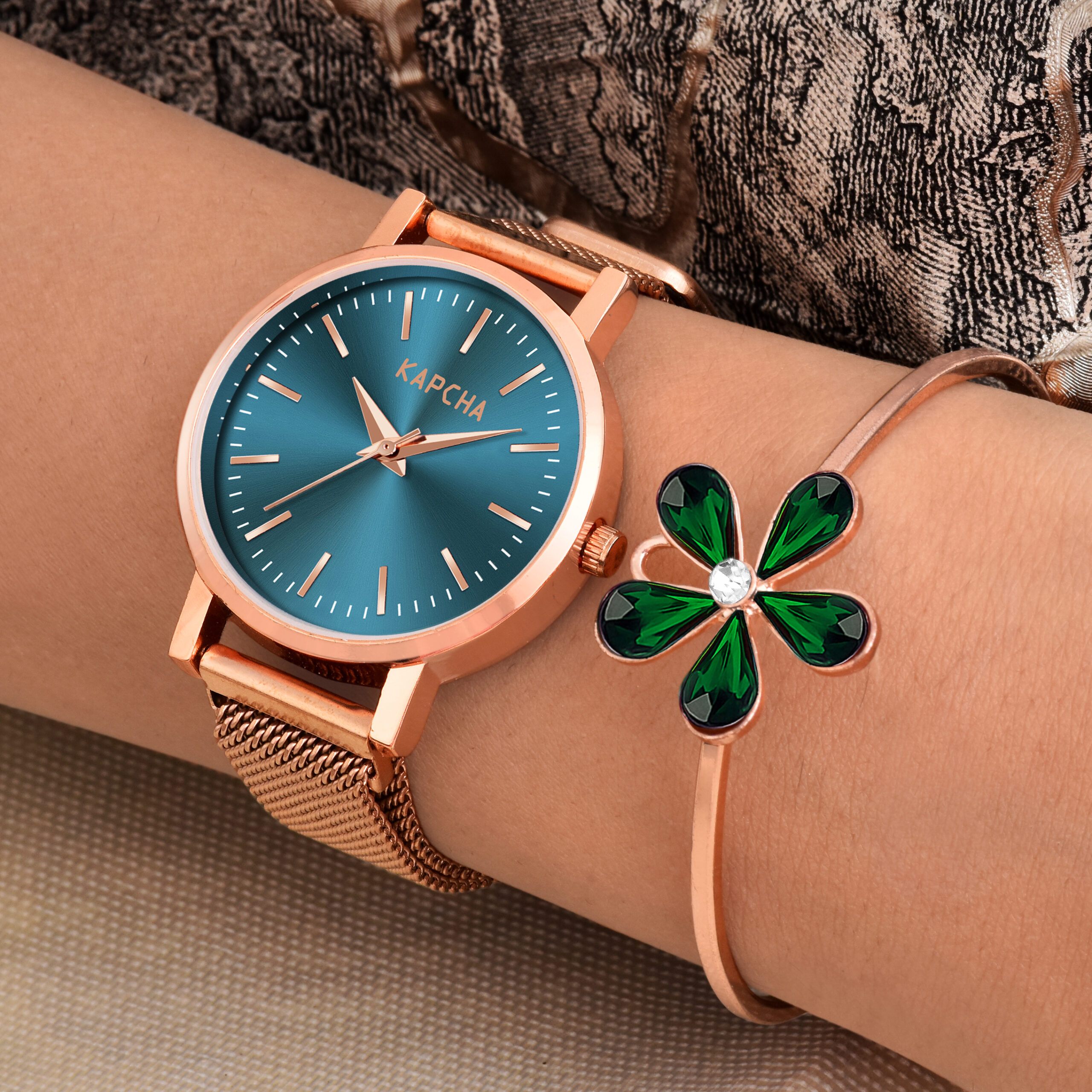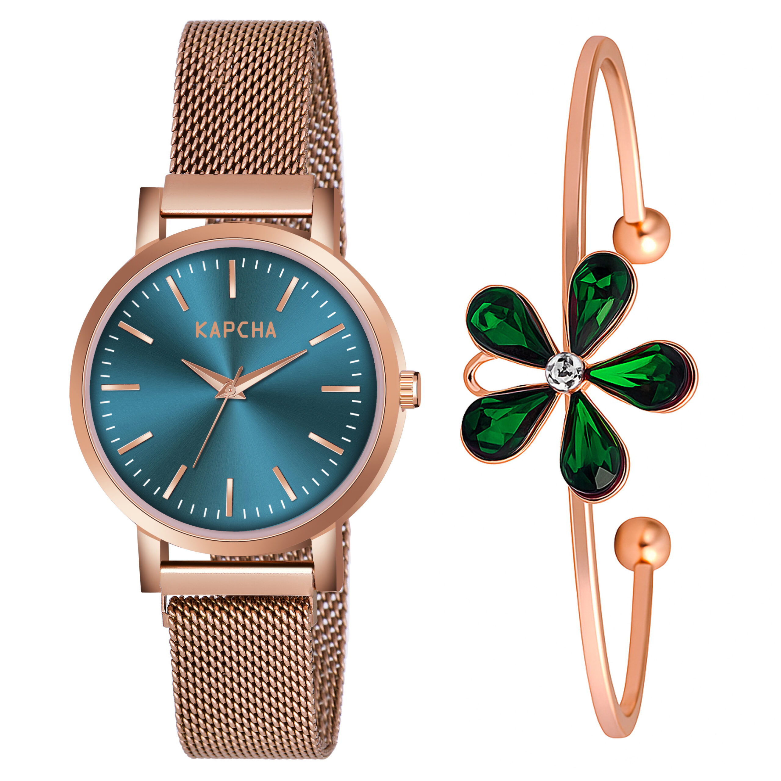 KAPCHA Ladies Watch & Adorned Bracelet Combo Set Quartz Movement Adjustable Strap for Both Casual and Formal Wear