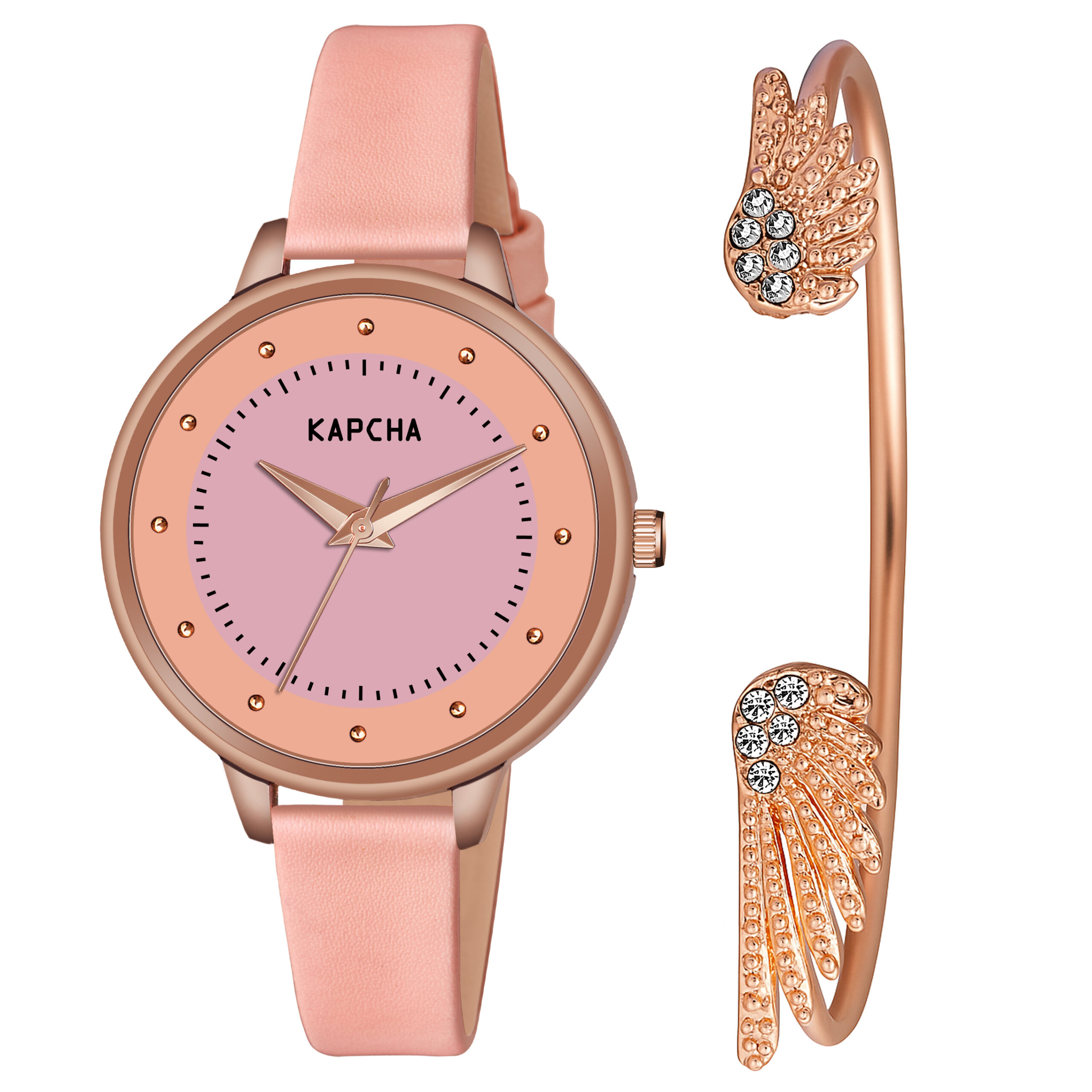 KAPCHA Leather Strap Watch & Stackable Bracelet Set for Women | Round Dial Shape, Quartz Movement | Fashion Accessory | Gift for Mom/Girlfriend/Friend