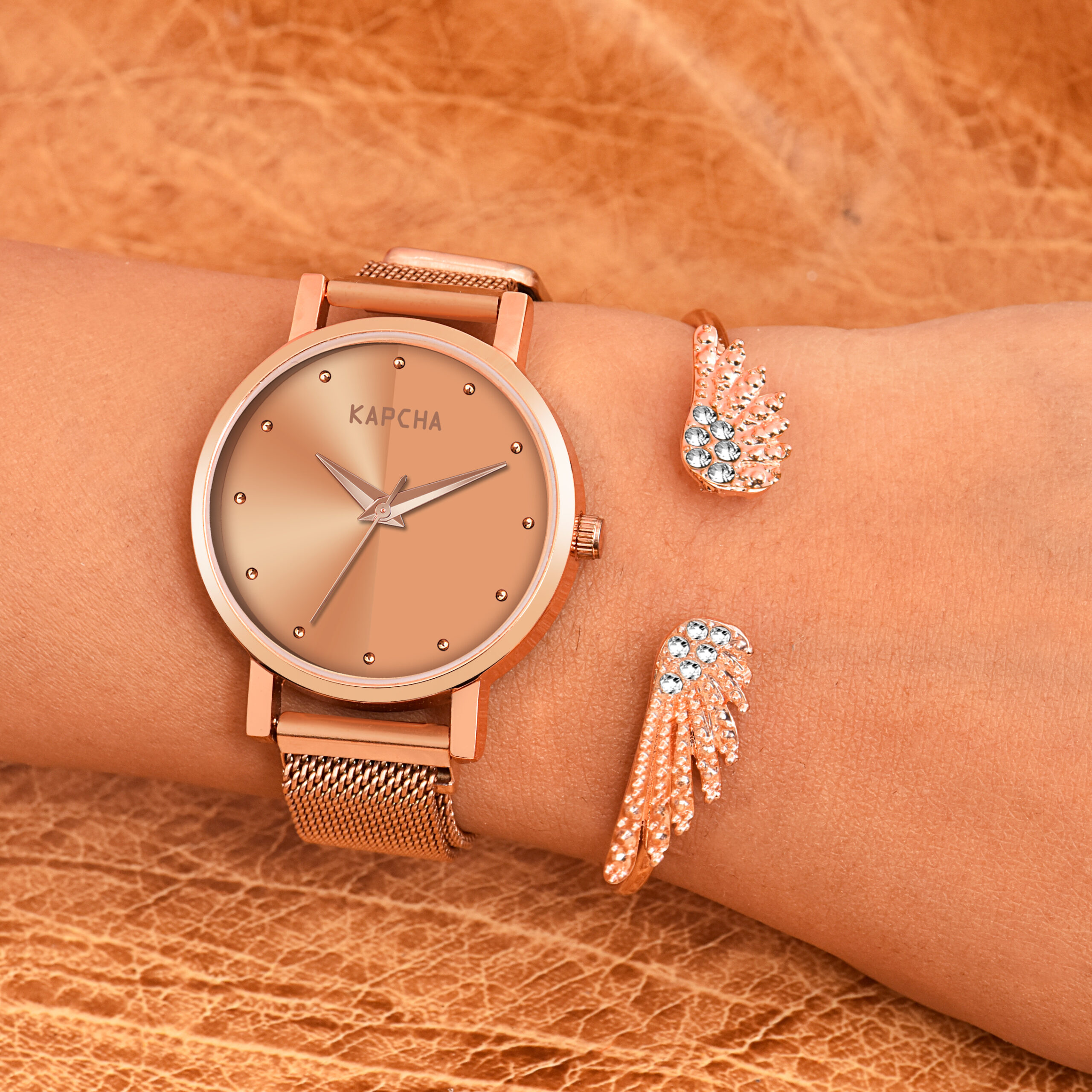 Be the first to review “KAPCHA Premium Women’s Watch & Bracelet Stack | Chain Strap, Round Dial, Quartz Movement | Anniversary Present for Wife/Mom, Casual and Formal Wear”