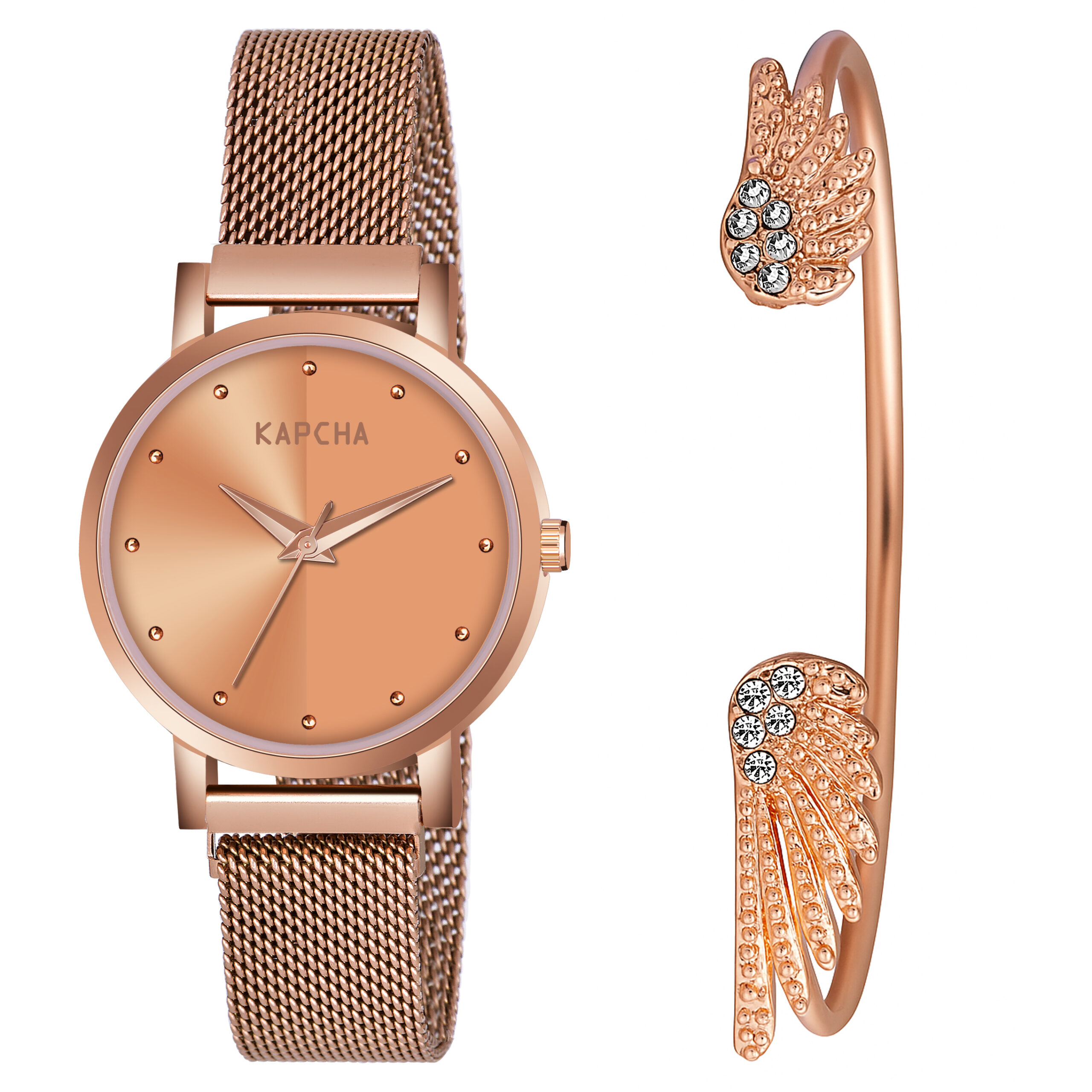 KAPCHA Premium Women’s Watch & Bracelet Stack | Chain Strap, Round Dial, Quartz Movement | Anniversary Present for Wife/Mom, Casual and Formal Wear