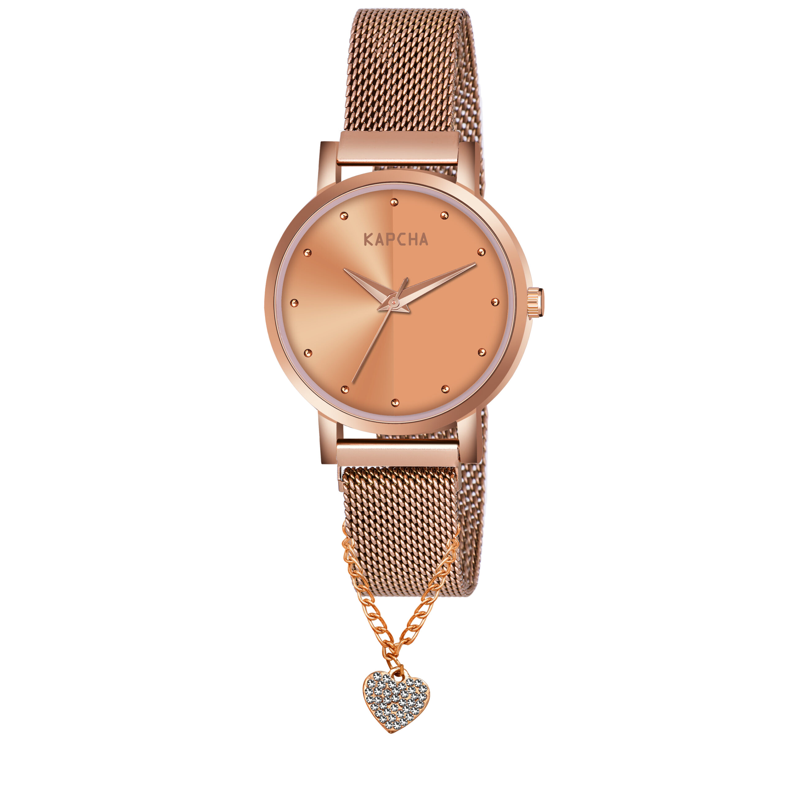 KAPCHA Premium Women’s Watch & Bracelet Stack | Chain Strap, Round Dial, Quartz Movement | Anniversary Present for Wife/Mom, Casual and Formal Wear
