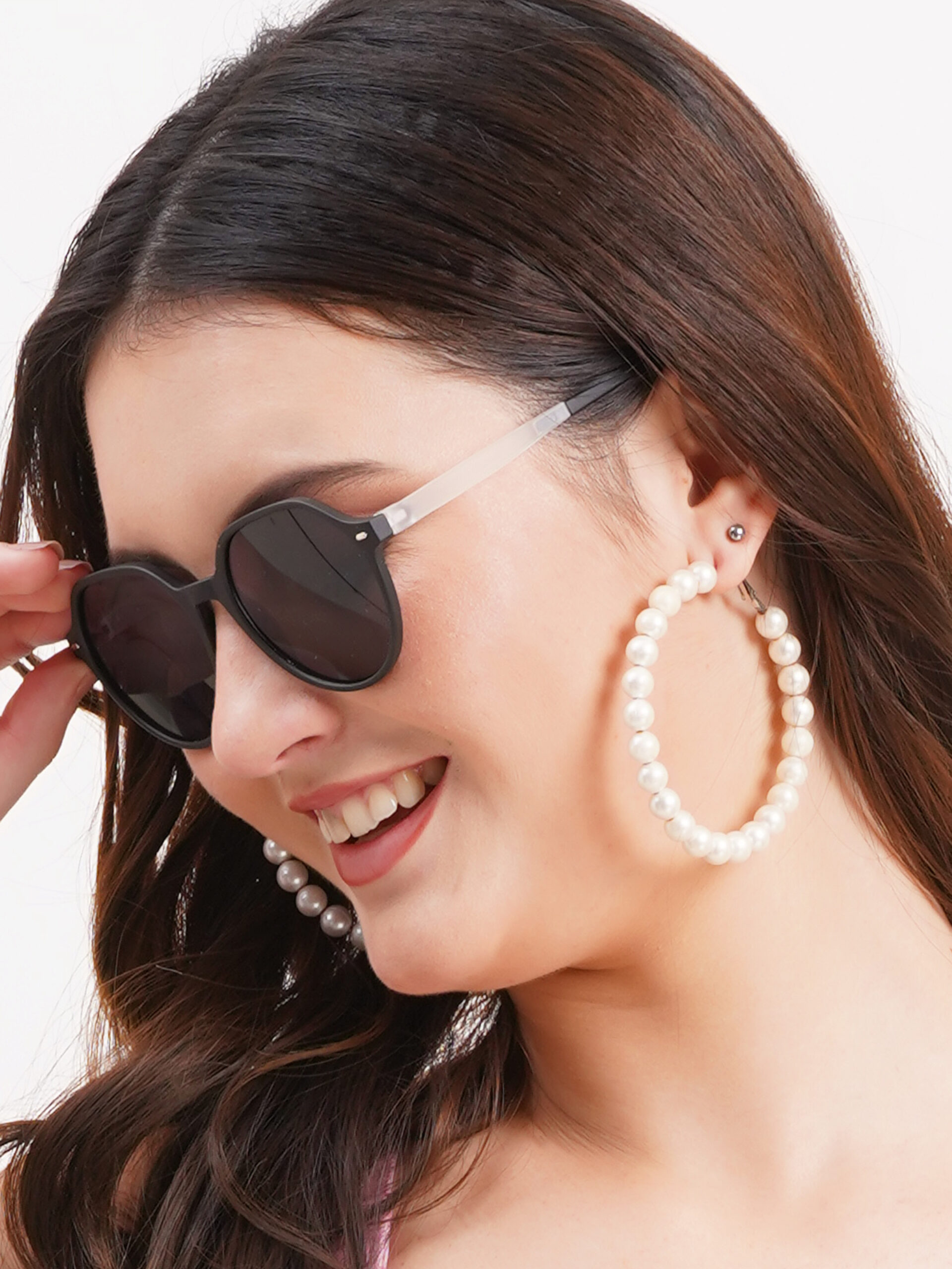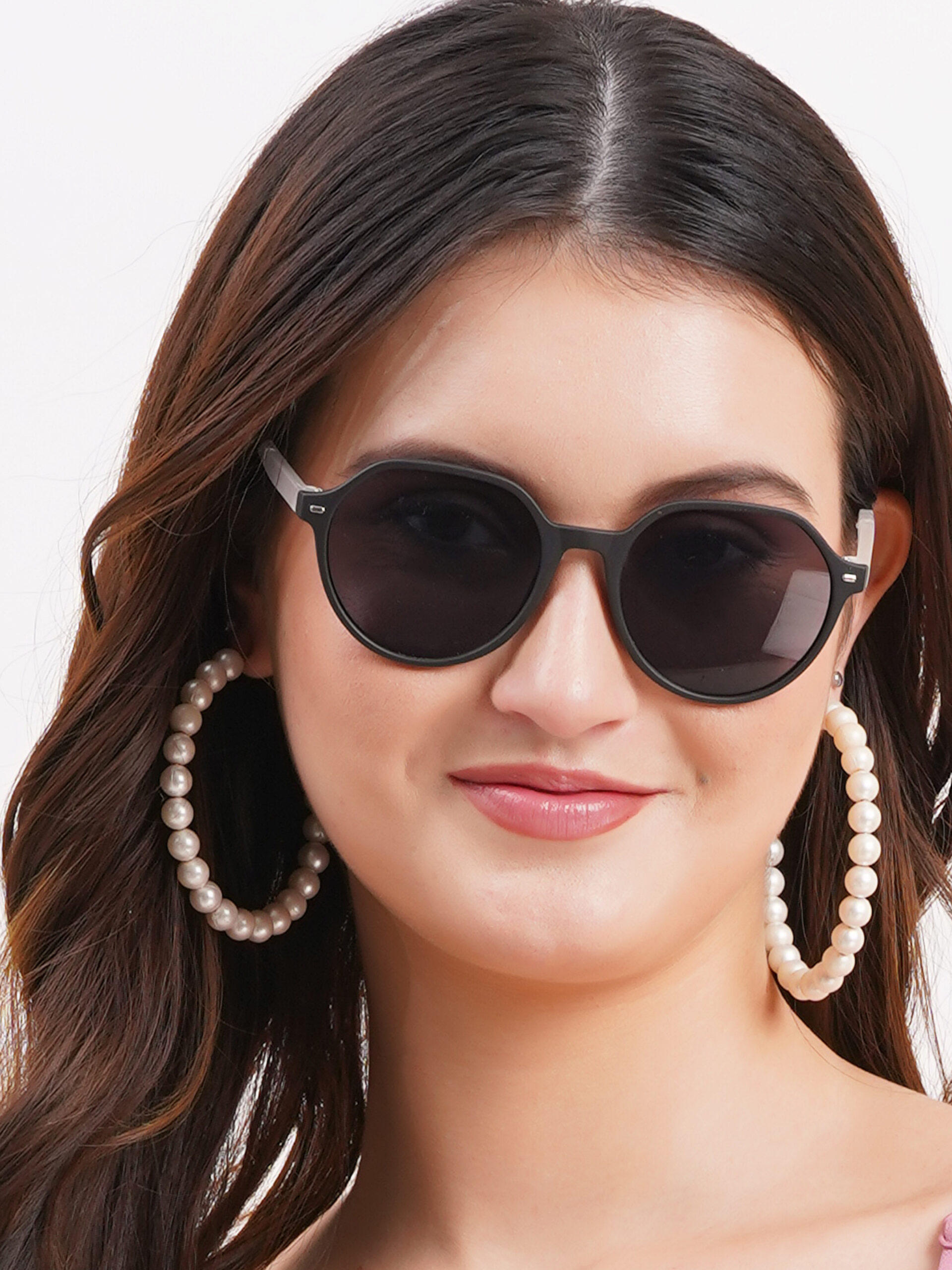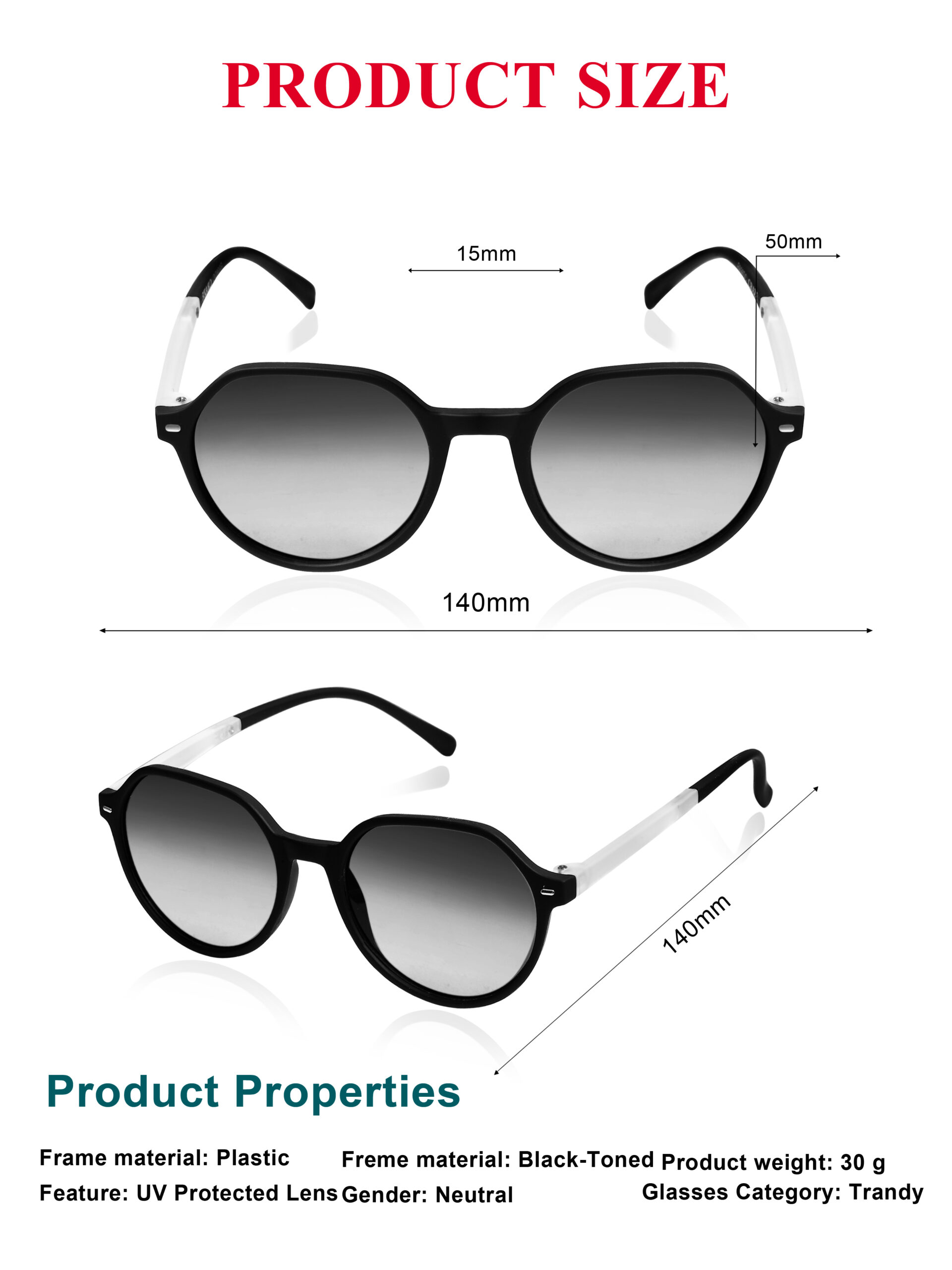 Make a bold style statement with these trendy round sunglasses featuring a sophisticated black frame complemented by striking white arms. The classic round design offers a perfect blend of retro charm and contemporary appeal. These lightweight sunglasses, weighing just 30g, are crafted from durable plastic material and come equipped with UV-protected lenses to shield your eyes from harmful rays. The thoughtfully designed dimensions of 140mm width, 50mm height, and 15mm bridge ensure a comfortable fit for most face shapes. Each pair comes with a premium black leather case featuring a secure button closure to keep your eyewear protected. These versatile sunglasses are perfect for everyday wear, whether you’re heading to the beach, running errands, or enjoying a casual day out. The gradient lenses add an extra touch of sophistication while providing optimal visibility in varying light conditions.