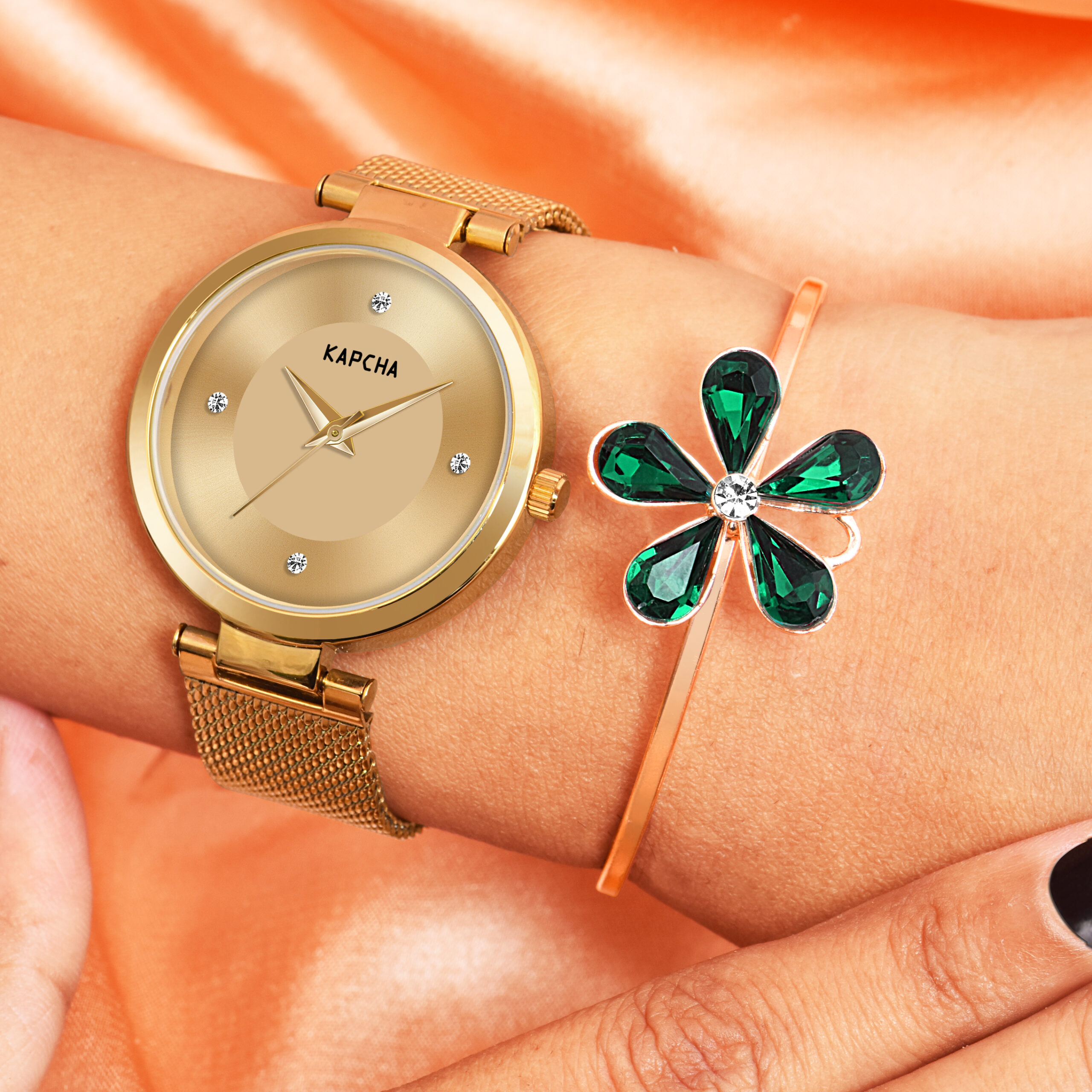 Be the first to review “KAPCHA Stainless Steel Watch and Chain Bracelet Combo for Women | Fashionable Workwear Jewellery| Quartz Movement | Gift for Her”