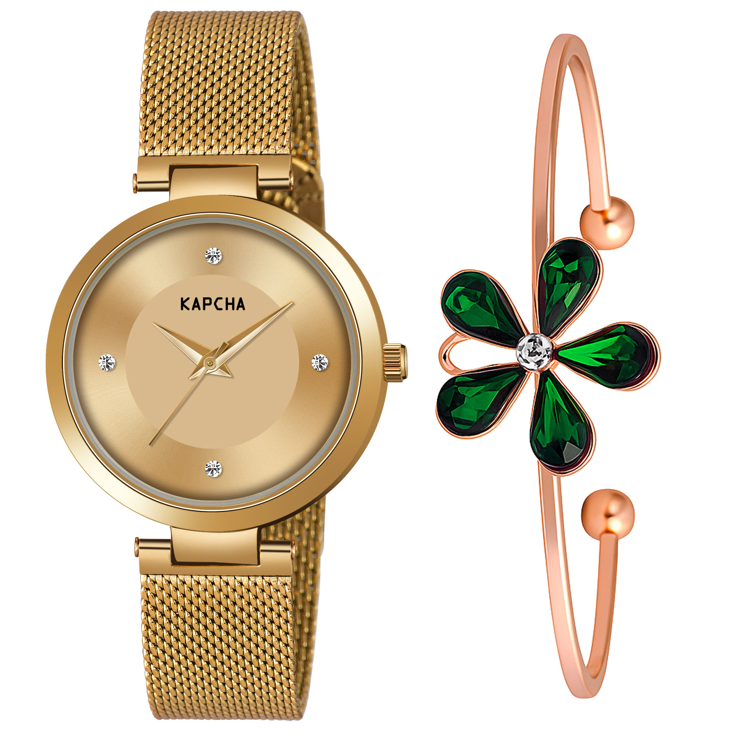 KAPCHA Stainless Steel Watch and Chain Bracelet Combo for Women | Fashionable Workwear Jewellery| Quartz Movement | Gift for Her