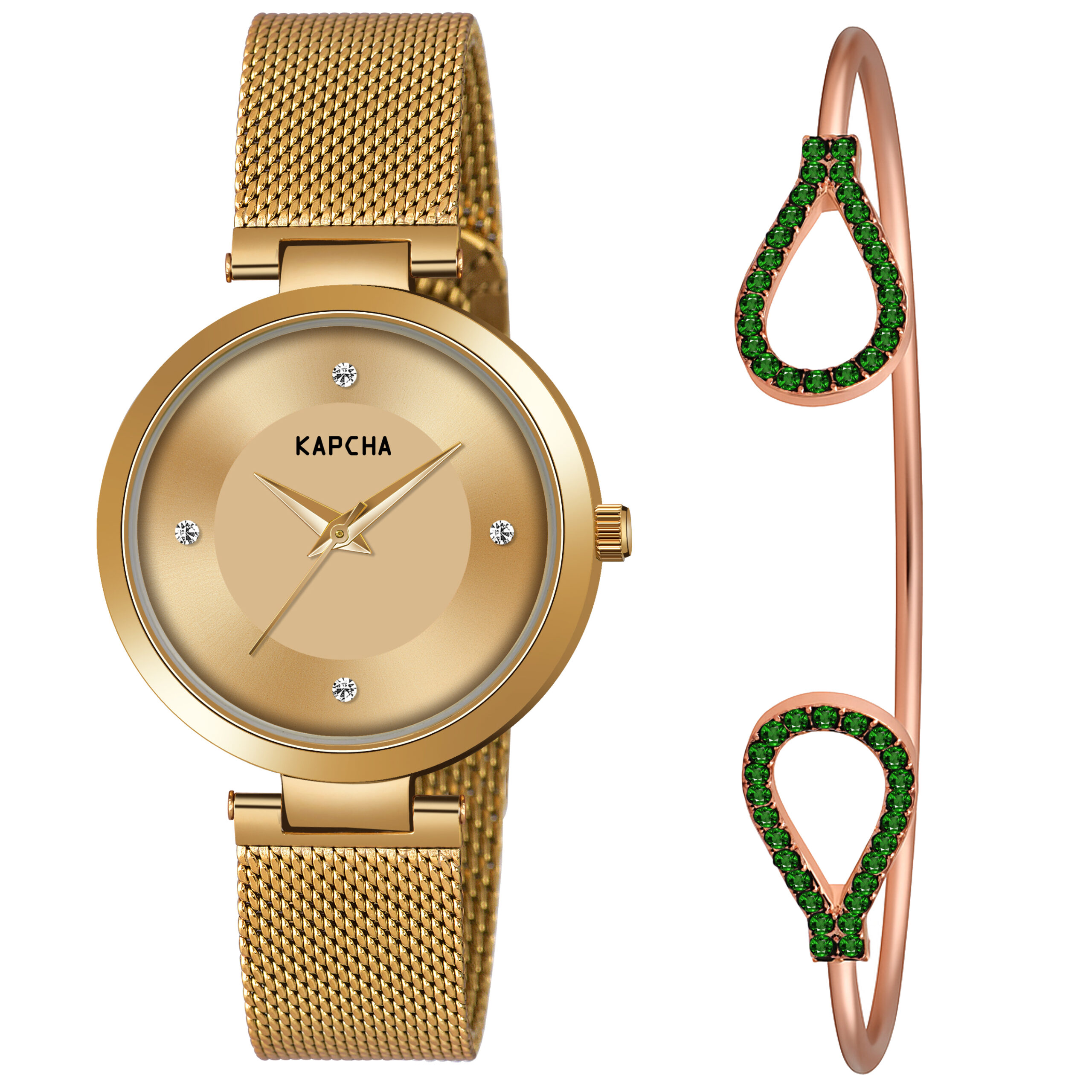 KAPCHA Stainless Steel Watch and Chain Bracelet Combo for Women | Fashionable Workwear Jewellery| Quartz Movement | Gift for Her
