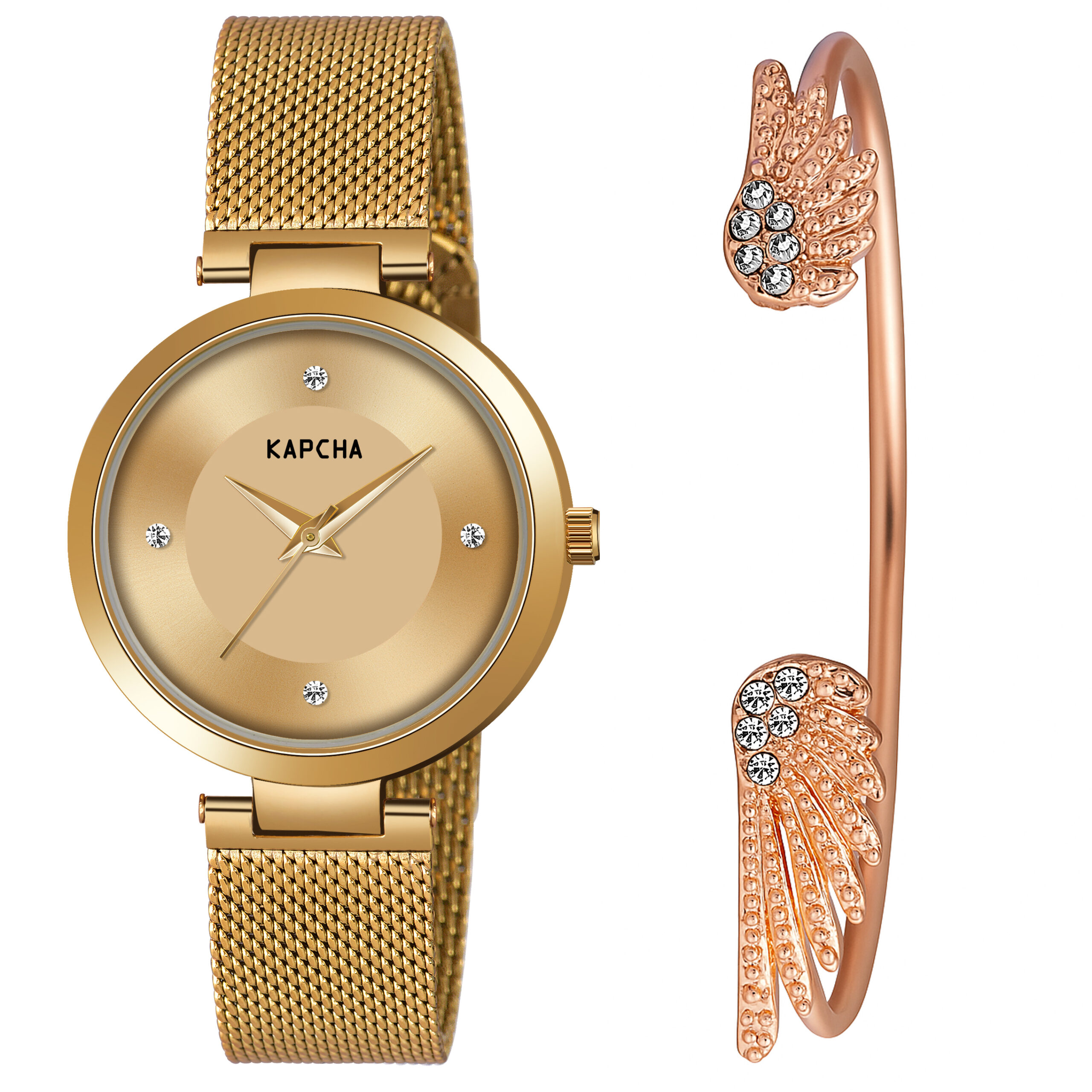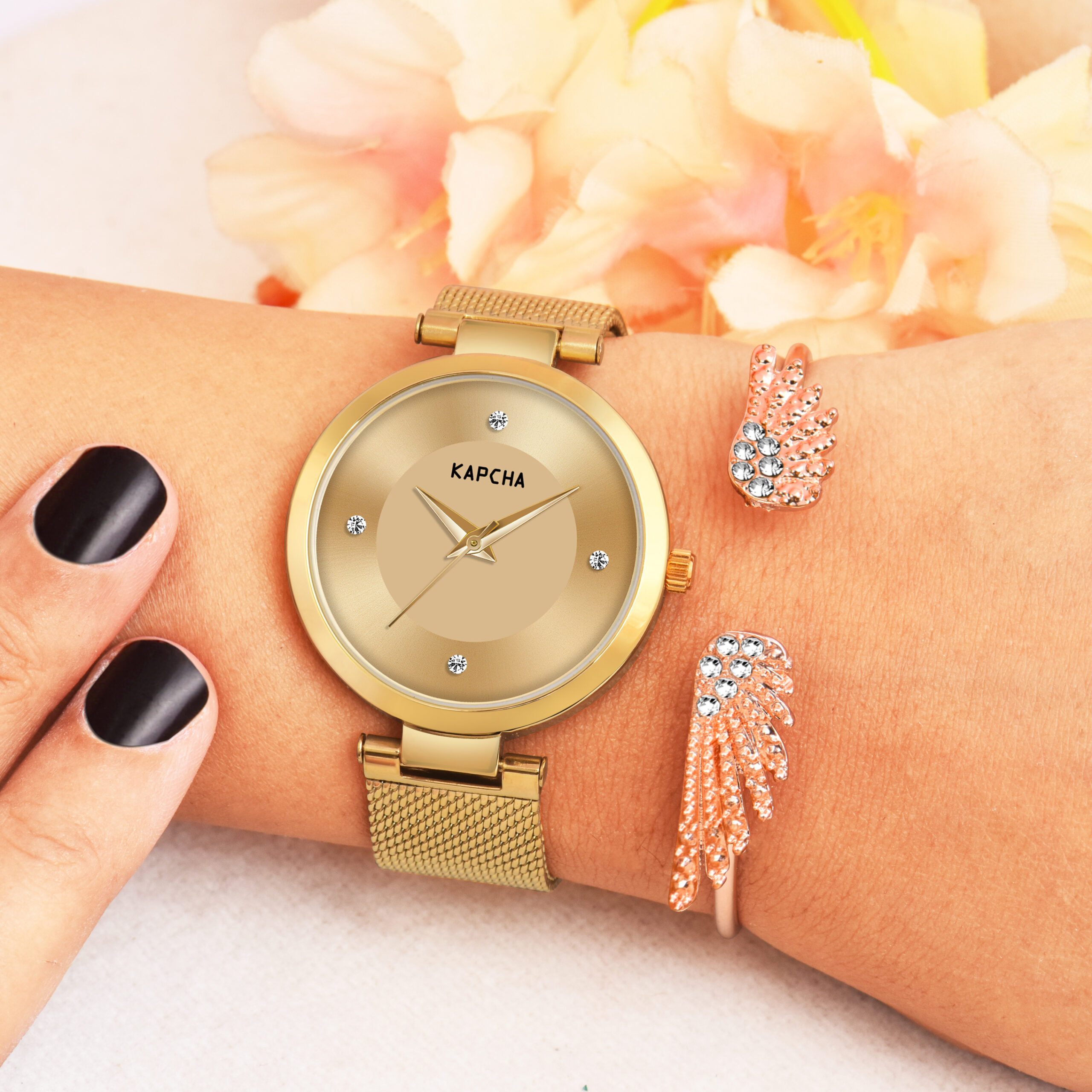 KAPCHA Stainless Steel Watch and Chain Bracelet Combo for Women | Fashionable Workwear Jewellery| Quartz Movement | Gift for Her
