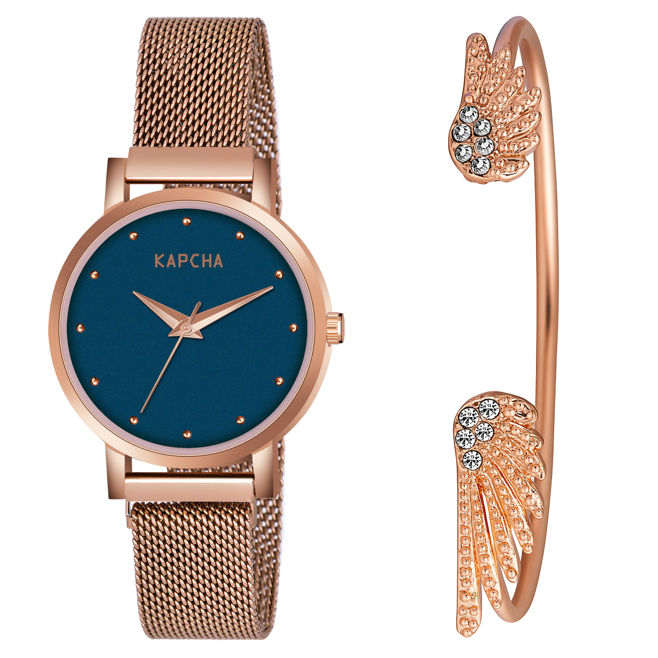 KAPCHA Stylish Analog Watch with Charm Bracelet Combo | Set of 2 | Designer Ladies Gift Box | Quartz Movement, Adjustable Fit