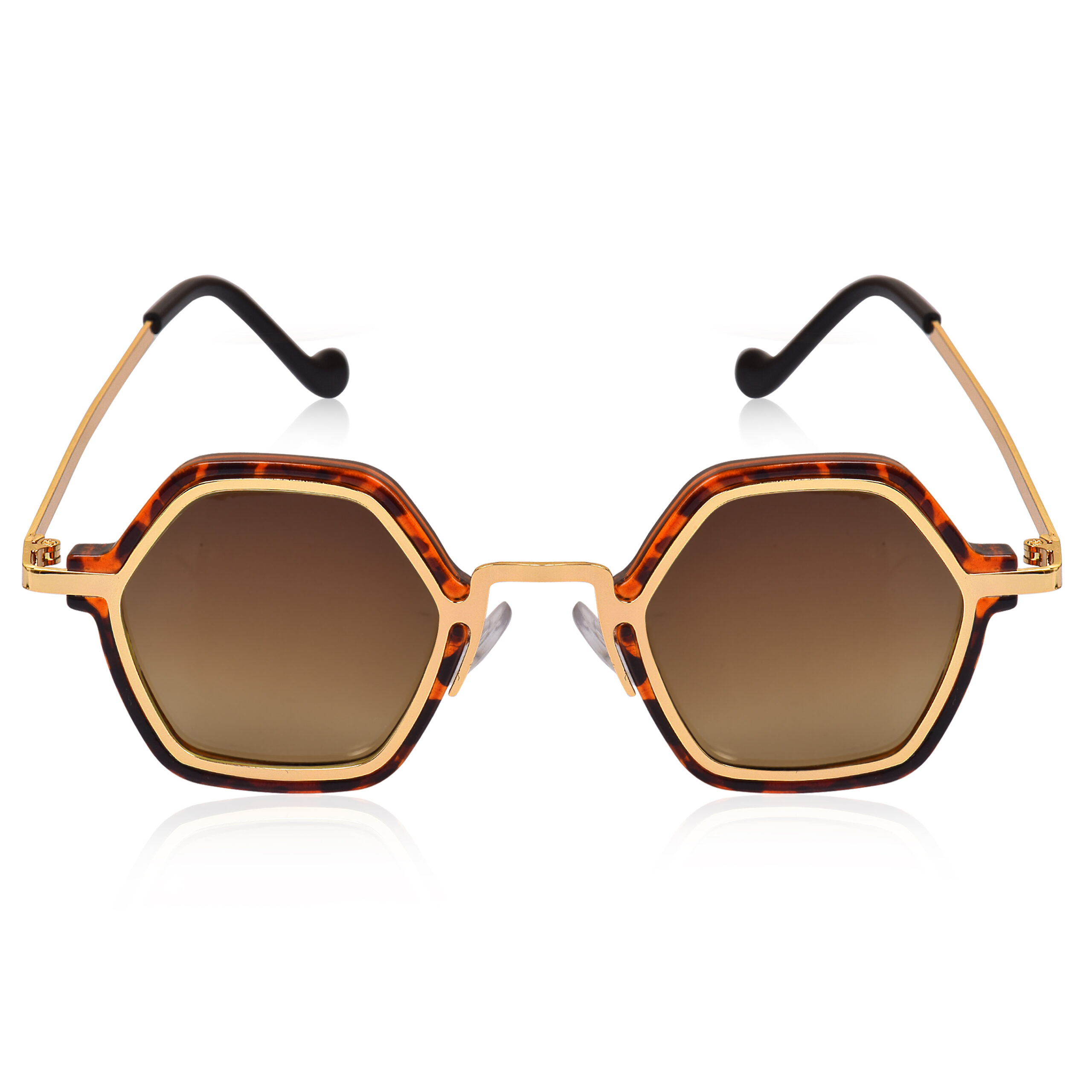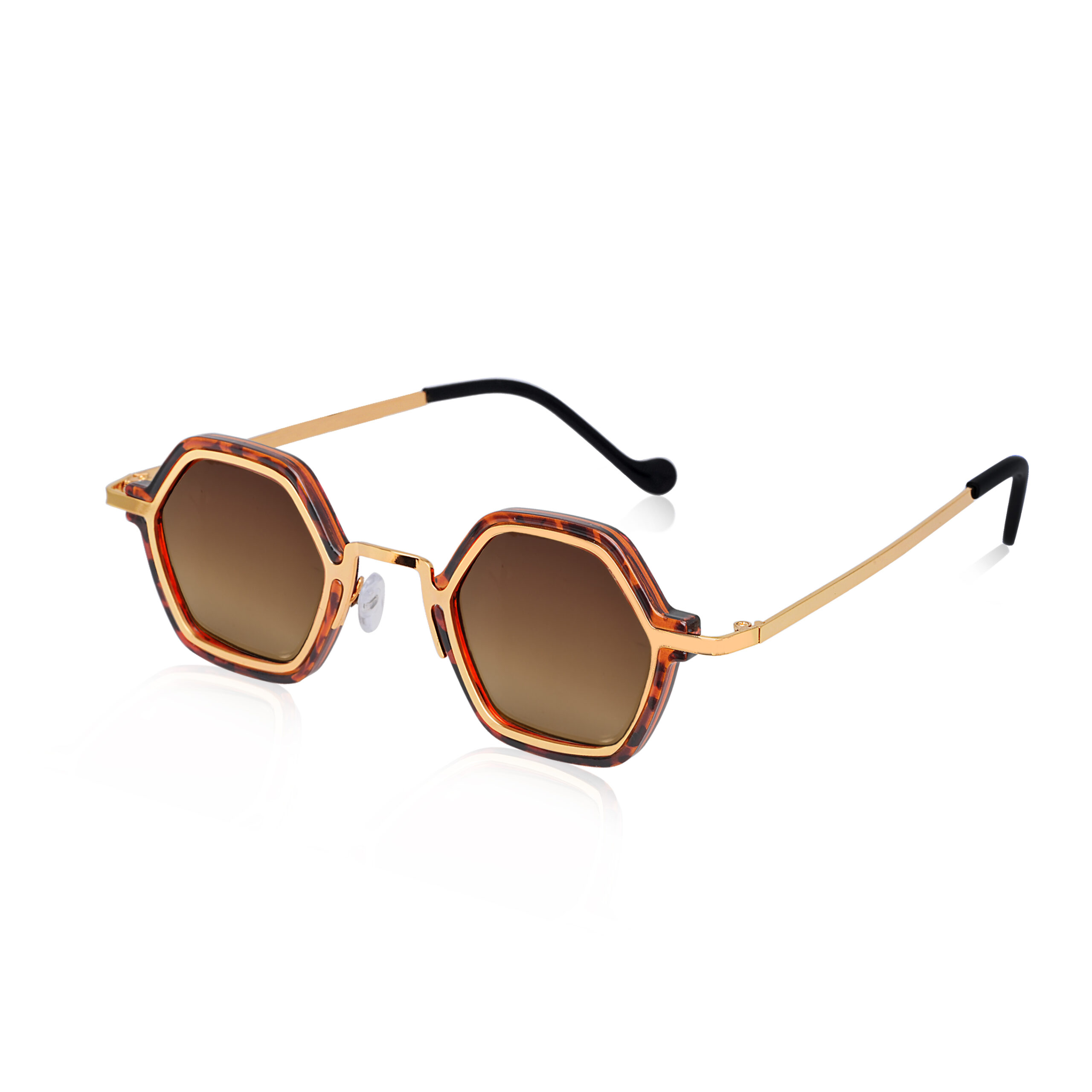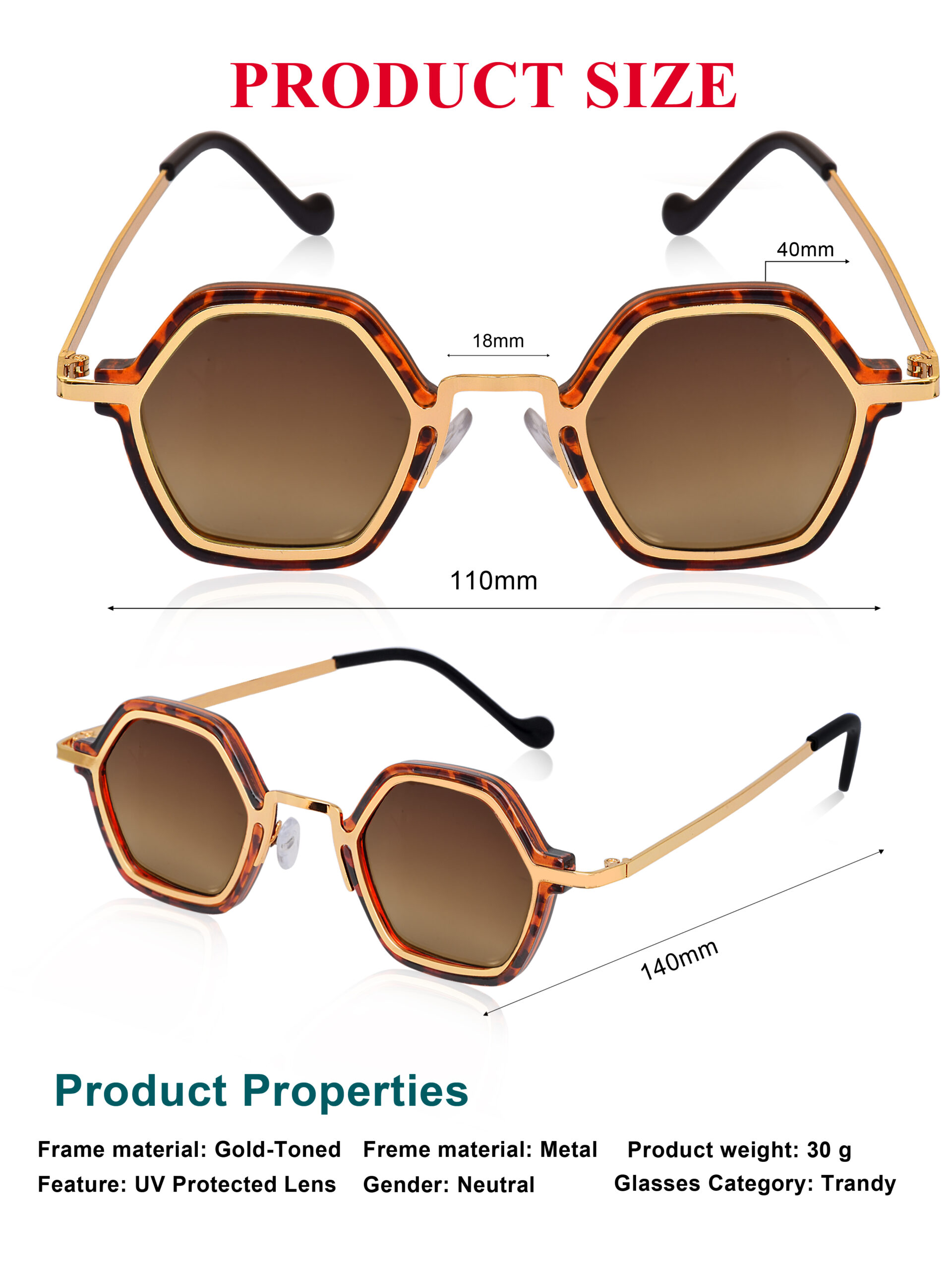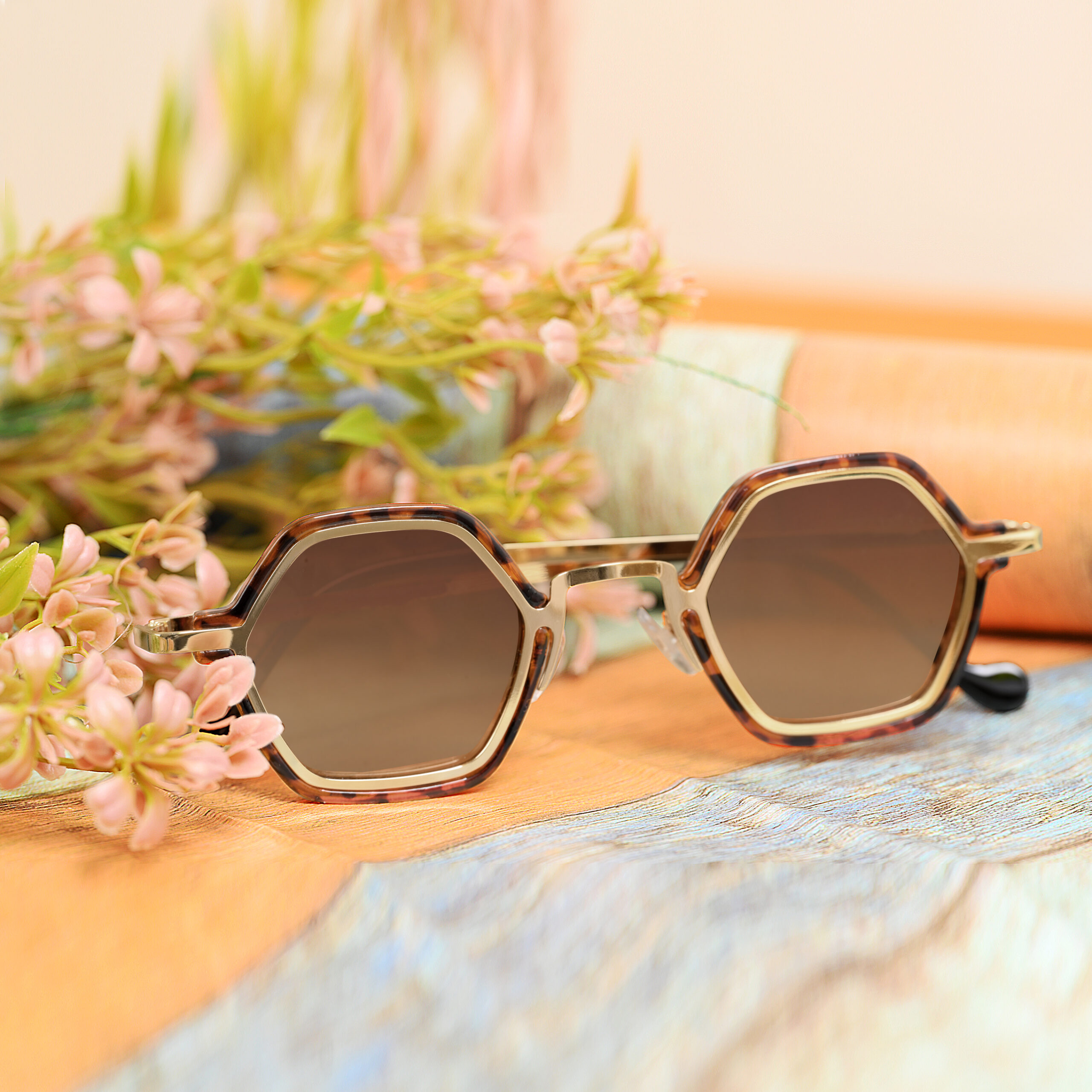 Make a bold fashion statement with these distinctive hexagonal sunglasses that blend vintage charm with contemporary style. The unique tortoiseshell-patterned frames are beautifully accented with elegant gold-tone metal temples, creating a sophisticated look that stands out from the crowd. The gradient brown lenses offer superior clarity while complementing the frame’s aesthetic appeal. Featuring comfortable nose pads and durable hinges, these sunglasses provide both style and functionality for everyday wear. The slim temples with rubber-tipped ends ensure a secure, comfortable fit throughout the day. These fashion-forward sunglasses are perfect for adding a touch of sophistication to any outfit, whether you’re attending a special occasion or enjoying a casual day out.