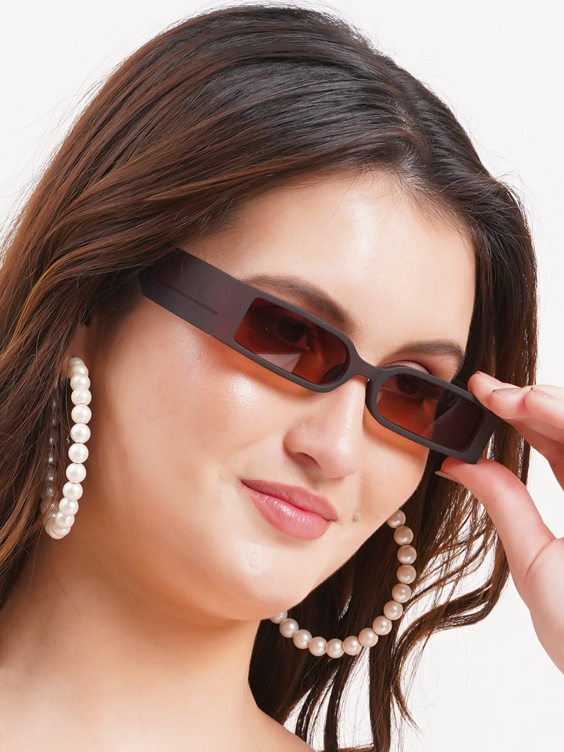 Make a bold fashion statement with these trendy rectangular sunglasses featuring a distinctive brown-toned frame design. The sleek plastic construction weighs just 30g, offering lightweight comfort for all-day wear. These gender-neutral sunglasses showcase UV-protected gradient lenses in an elegant rectangular shape, measuring 140mm in width with 12mm thick frames and 50mm temple length. The sophisticated brown gradient lenses complement the modern rectangular silhouette, perfect for elevating any casual or formal outfit. Each pair comes with a premium black leather KAPCHA case featuring a secure button closure to keep your sunglasses protected when not in use. The contemporary design combines style with practicality, making these sunglasses an essential accessory for fashion-forward individuals looking to add a touch of sophistication to their eyewear collection.