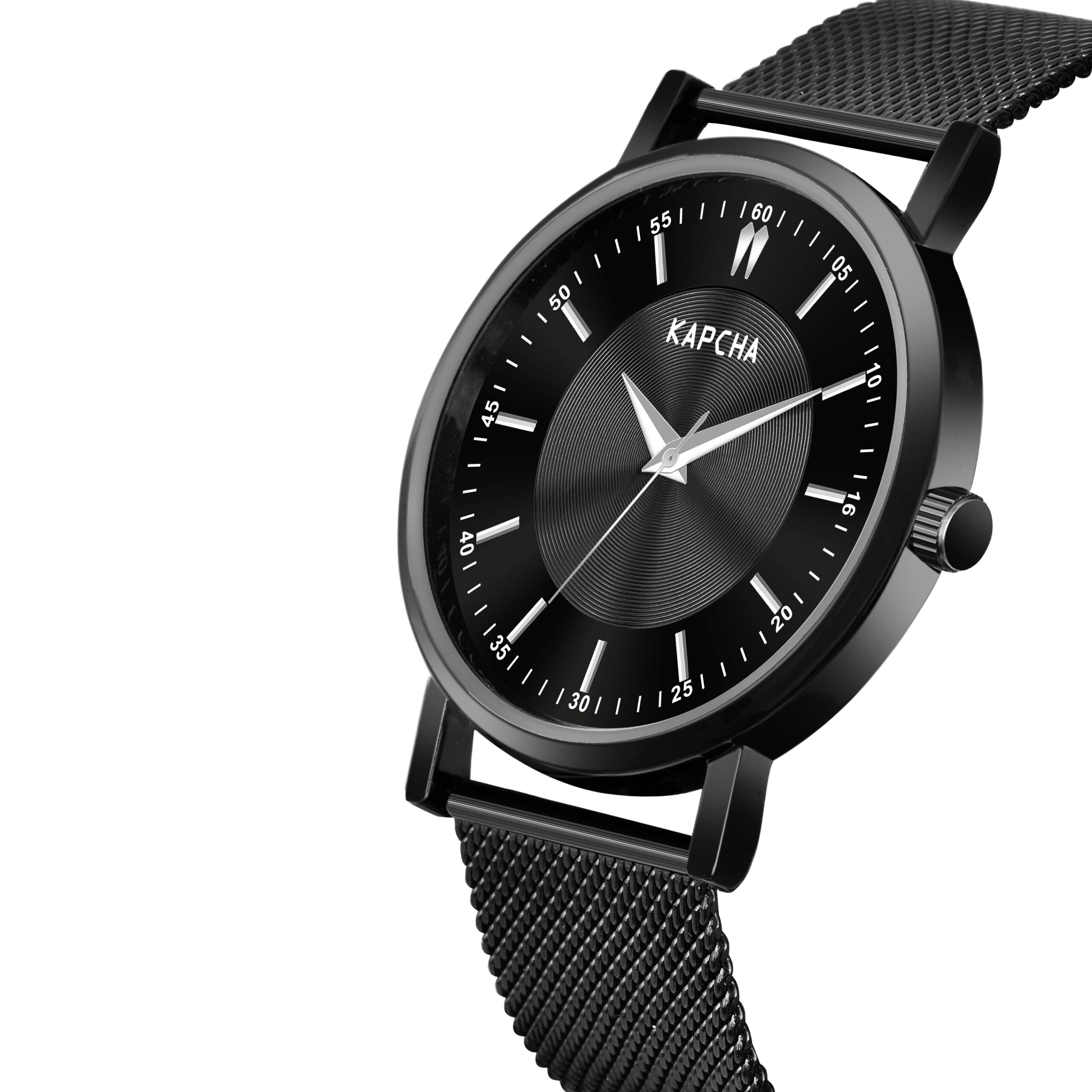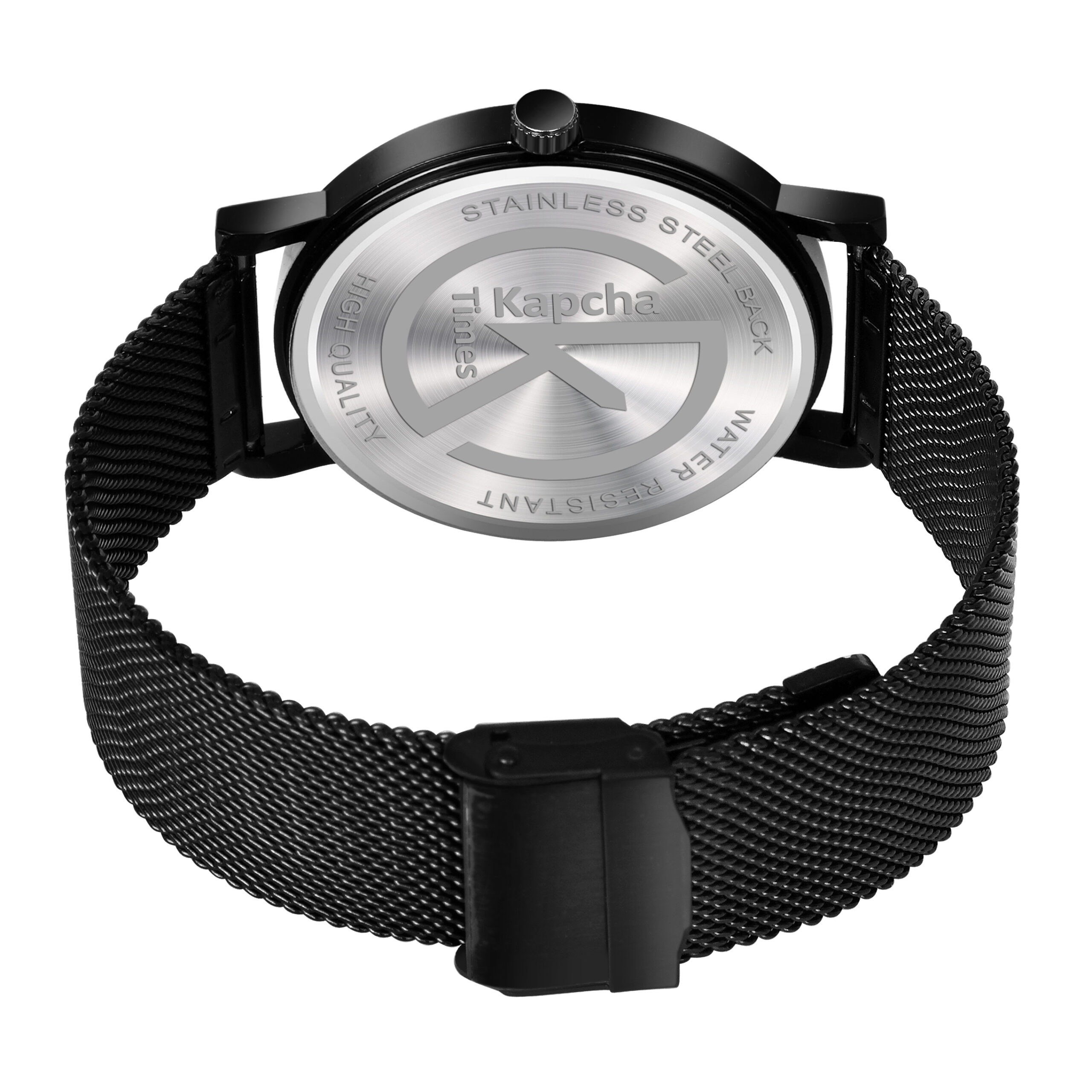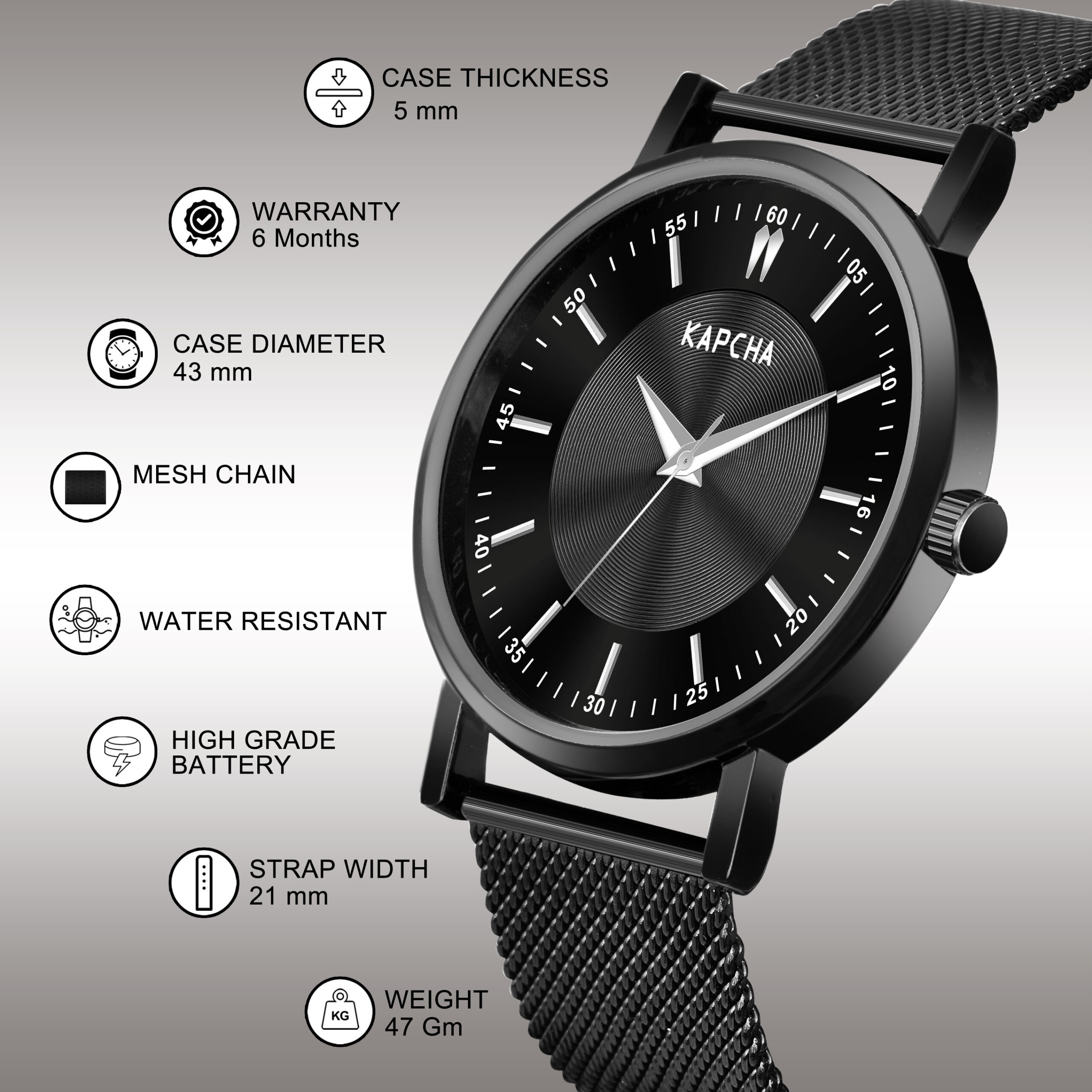 Be the first to review “KAPCHA Versatile Stylish Mens Mesh Chain Strap Watch with Gift Bracelet Round Dial Shape, Sleek Design, Reliable Quartz Movement”