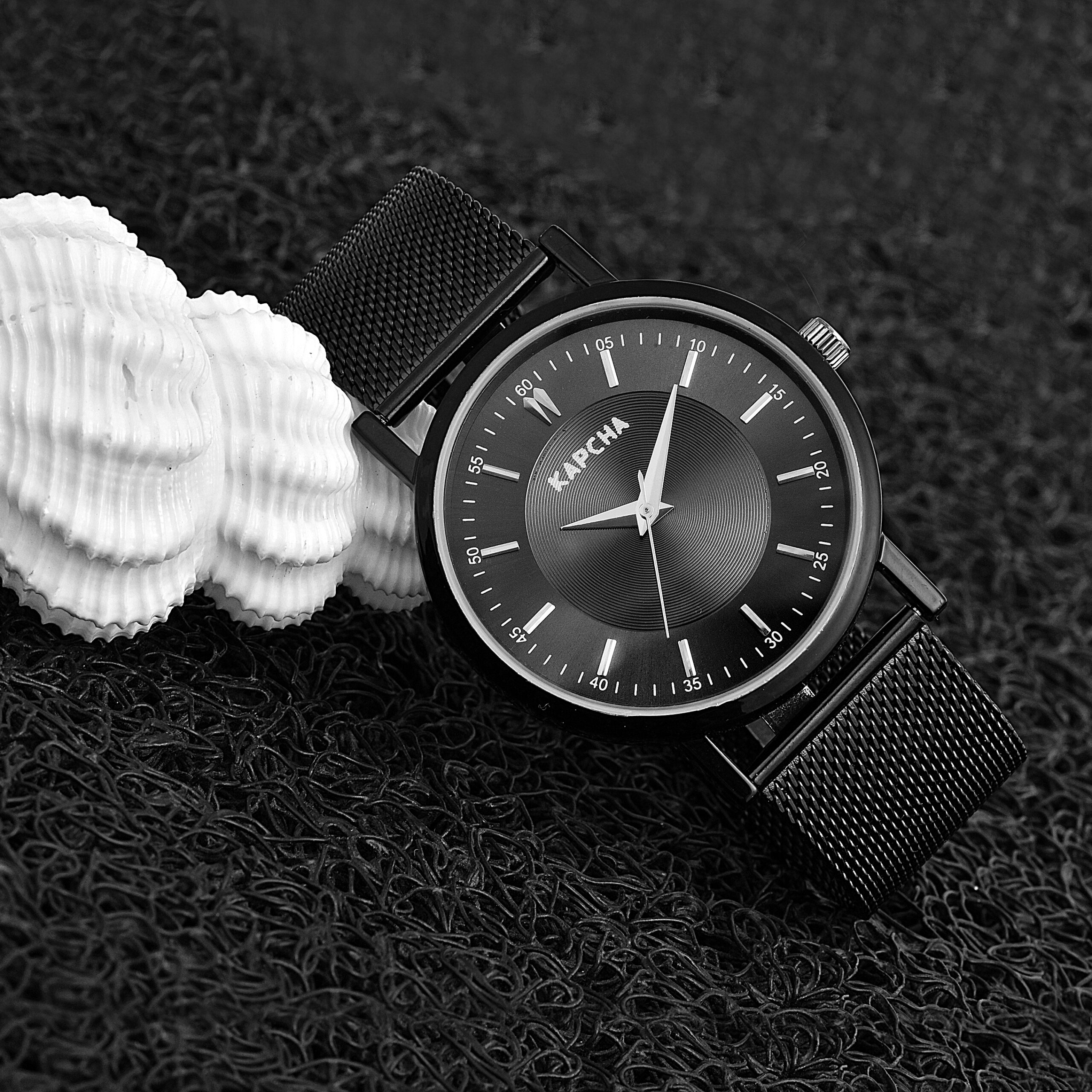 KAPCHA Versatile Stylish Mens Mesh Chain Strap Watch with Gift Bracelet Round Dial Shape, Sleek Design, Reliable Quartz Movement