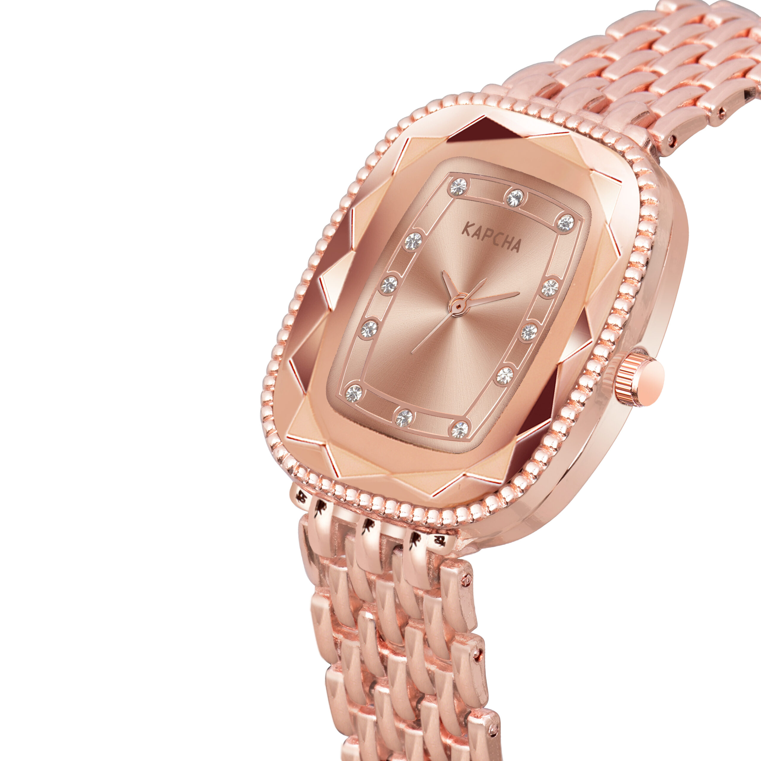 KAPCHA Versatile Stylish Women’s Mesh Chain Strap Watch with Golden Stone Gifting Bracelet Rectangular Dial Shape, Quartz Movement, Casual and Formal Wear