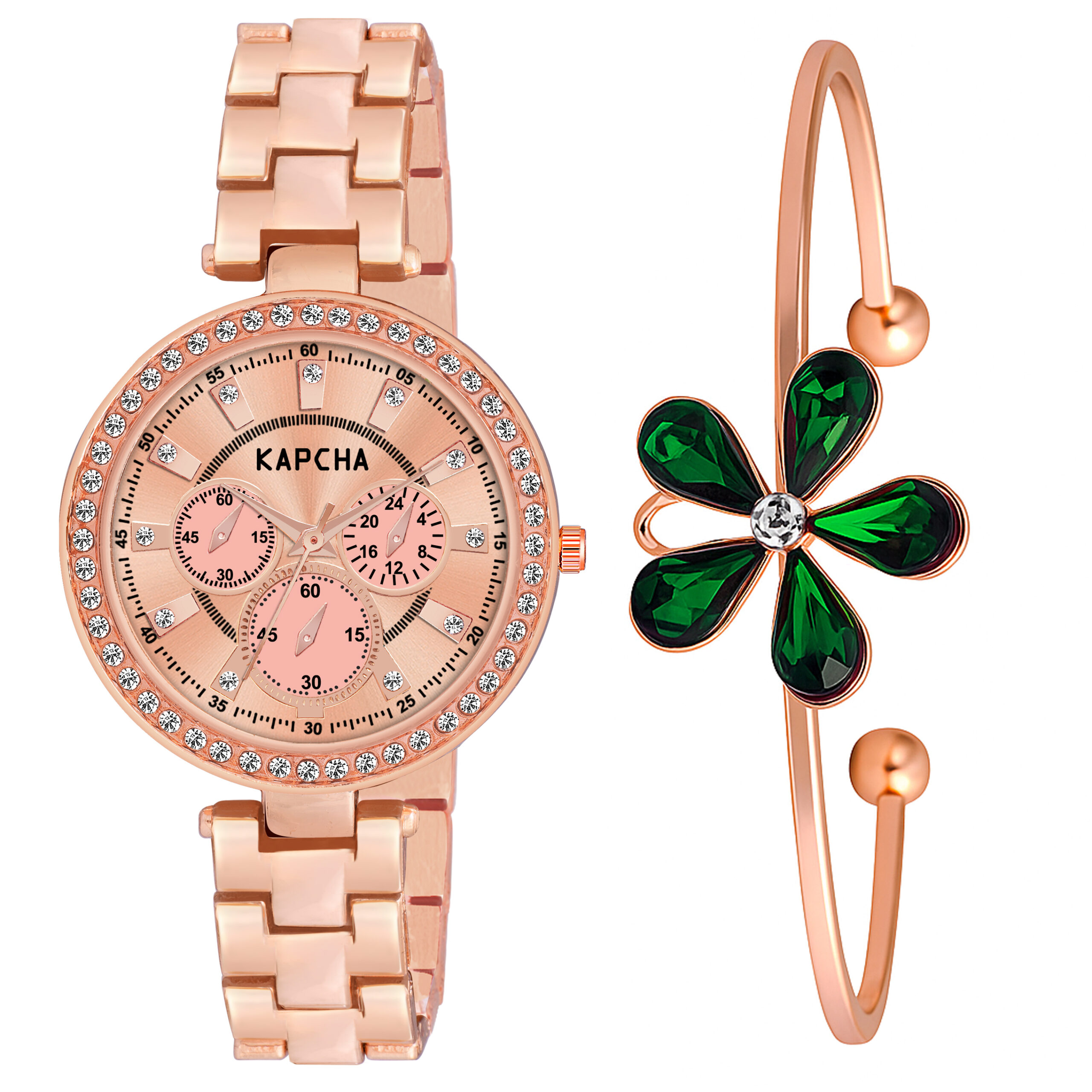 KAPCHA Watch & Bracelet Set for Girls/Teens | Fashionable Combo Gift for Her | Mesh Chain Strap, Round Dial, Quartz Movement| Casual and Formal Wear