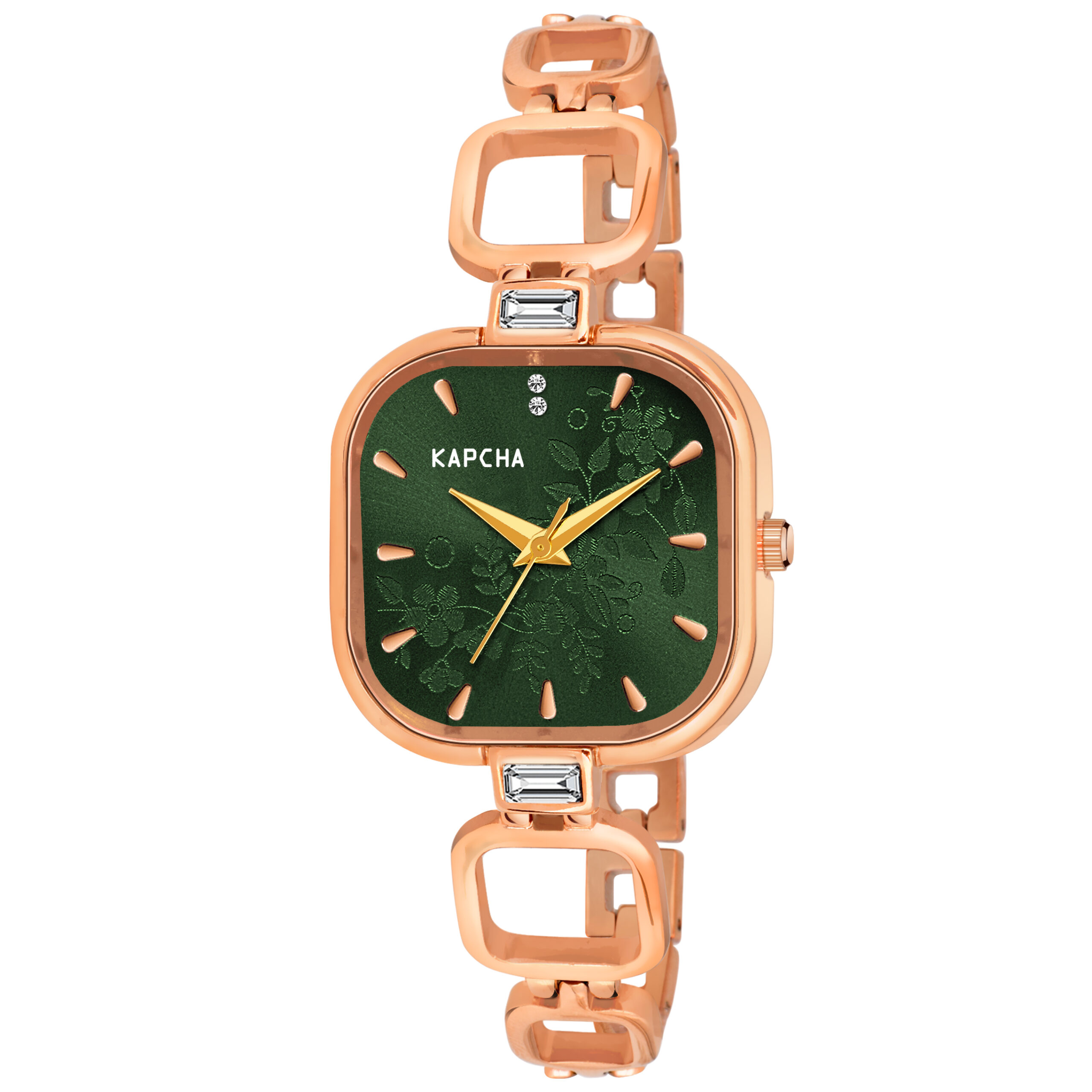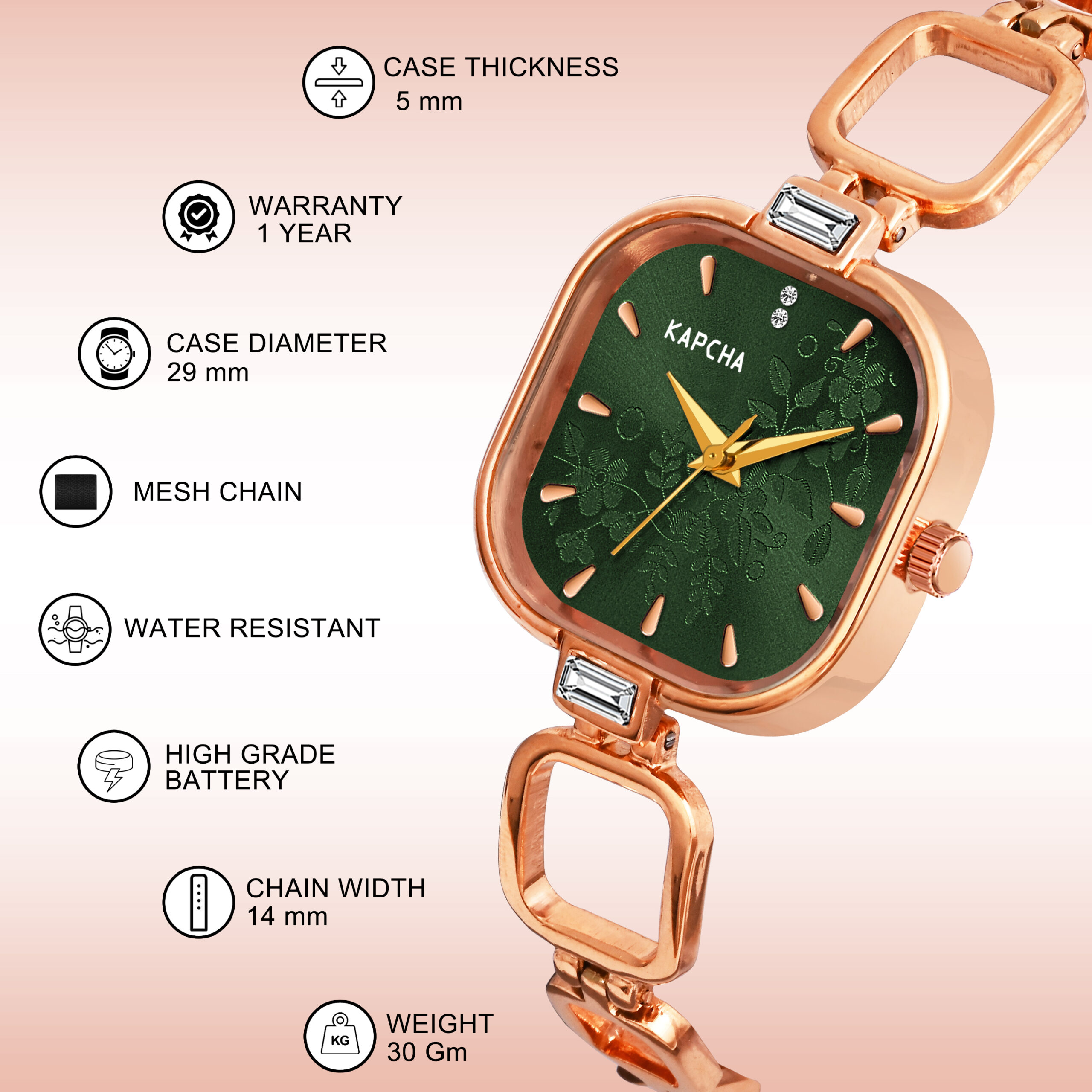 KAPCHA Women’s Analog Watch – Stylish Rose Gold Bracelet Strap, Elegant Quartz Wrist Watch (Green)