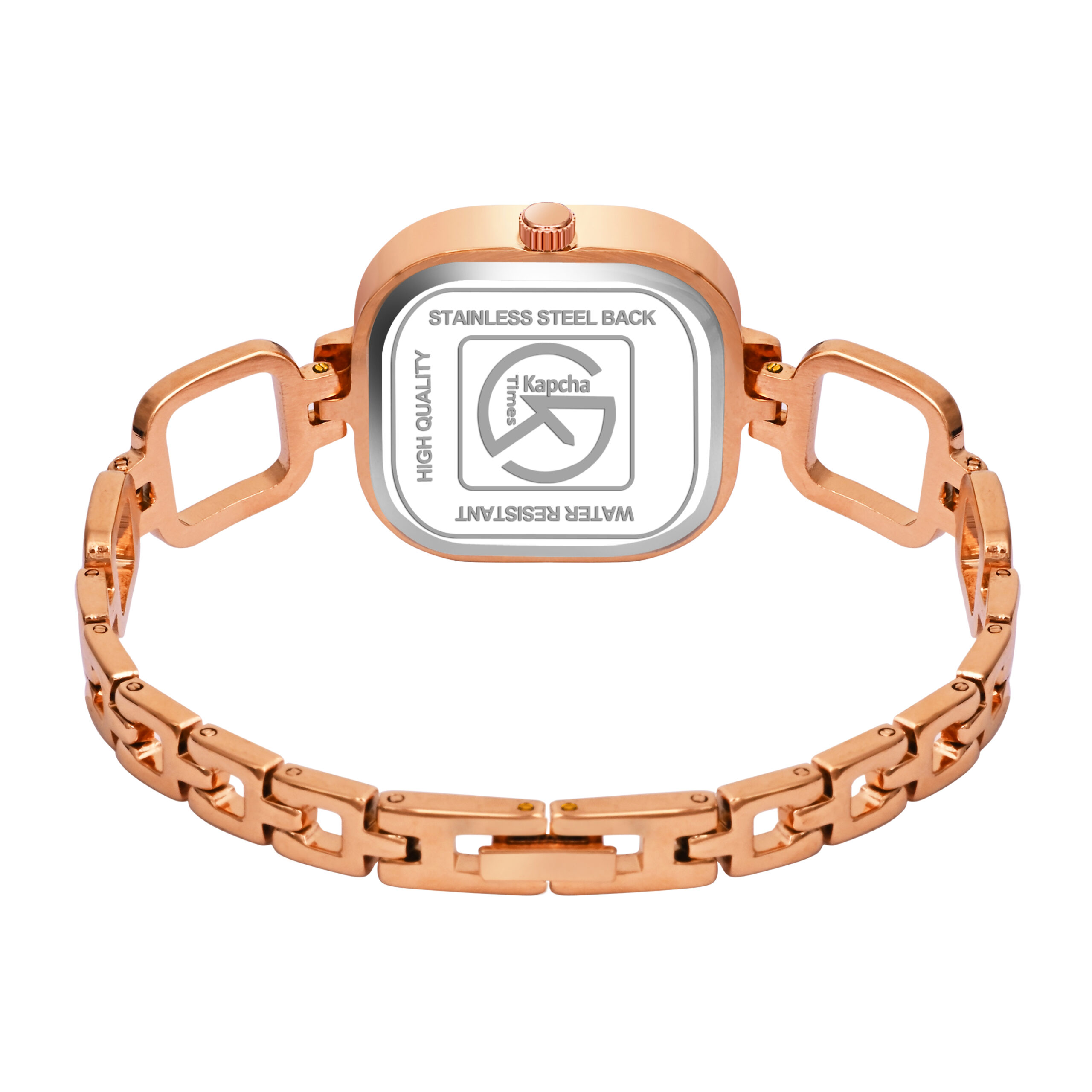 Elevate your wrist game with this stunning KAPCHA women’s analog watch. The exquisite rose gold bracelet strap adds a touch of sophistication to any ensemble, making it perfect for both casual and formal occasions. This elegant timepiece features a reliable quartz movement that ensures precise timekeeping. The watch’s refined design seamlessly blends contemporary style with classic aesthetics, creating an accessory that’s both timeless and trendy. Whether you’re heading to the office, attending a special event, or enjoying a weekend brunch, this versatile wrist watch complements your look with its graceful charm. The bracelet-style strap not only serves as a functional timepiece but doubles as a beautiful piece of jewellery that enhances your overall appearance. A thoughtful gift choice for the fashion-conscious woman who appreciates both style and functionality.
