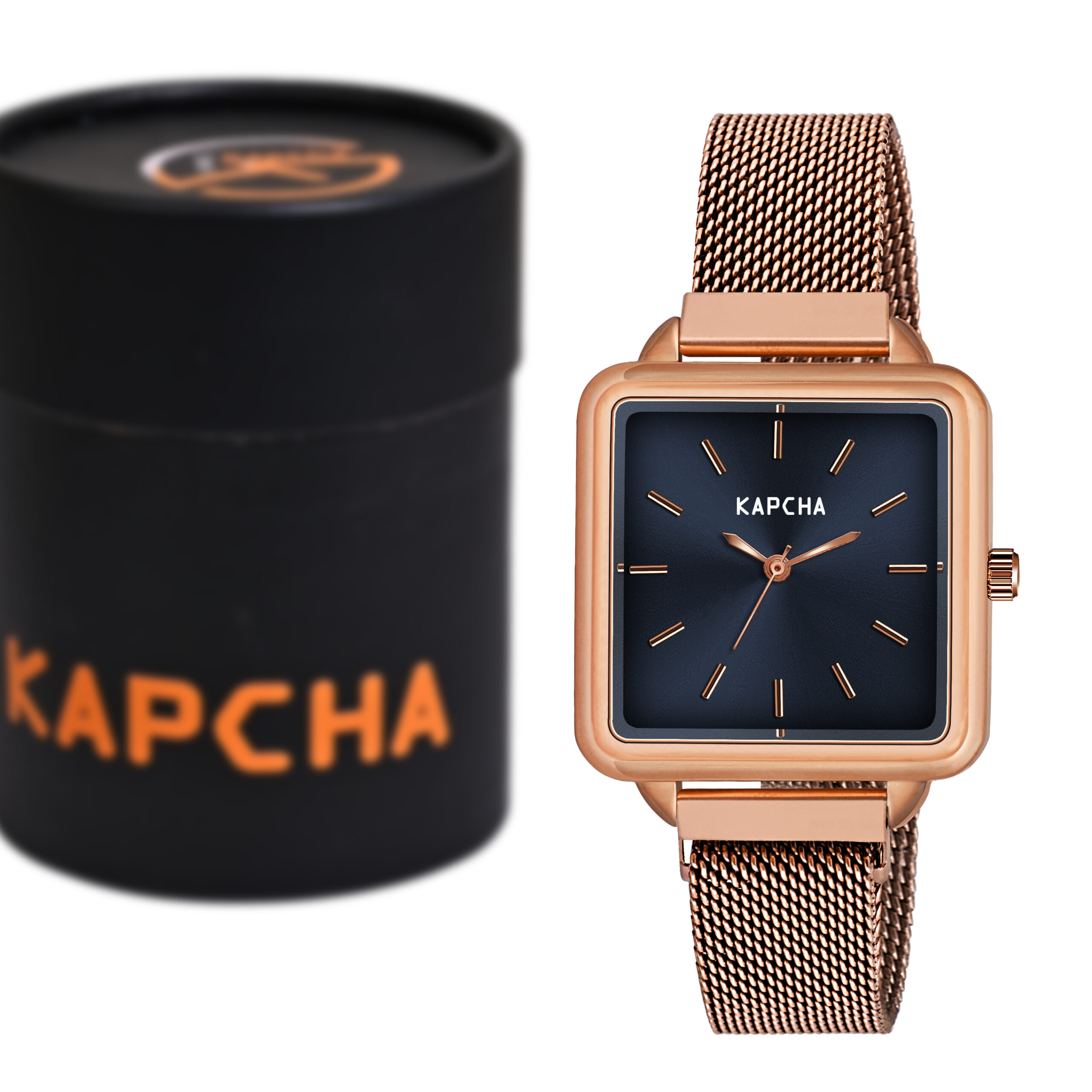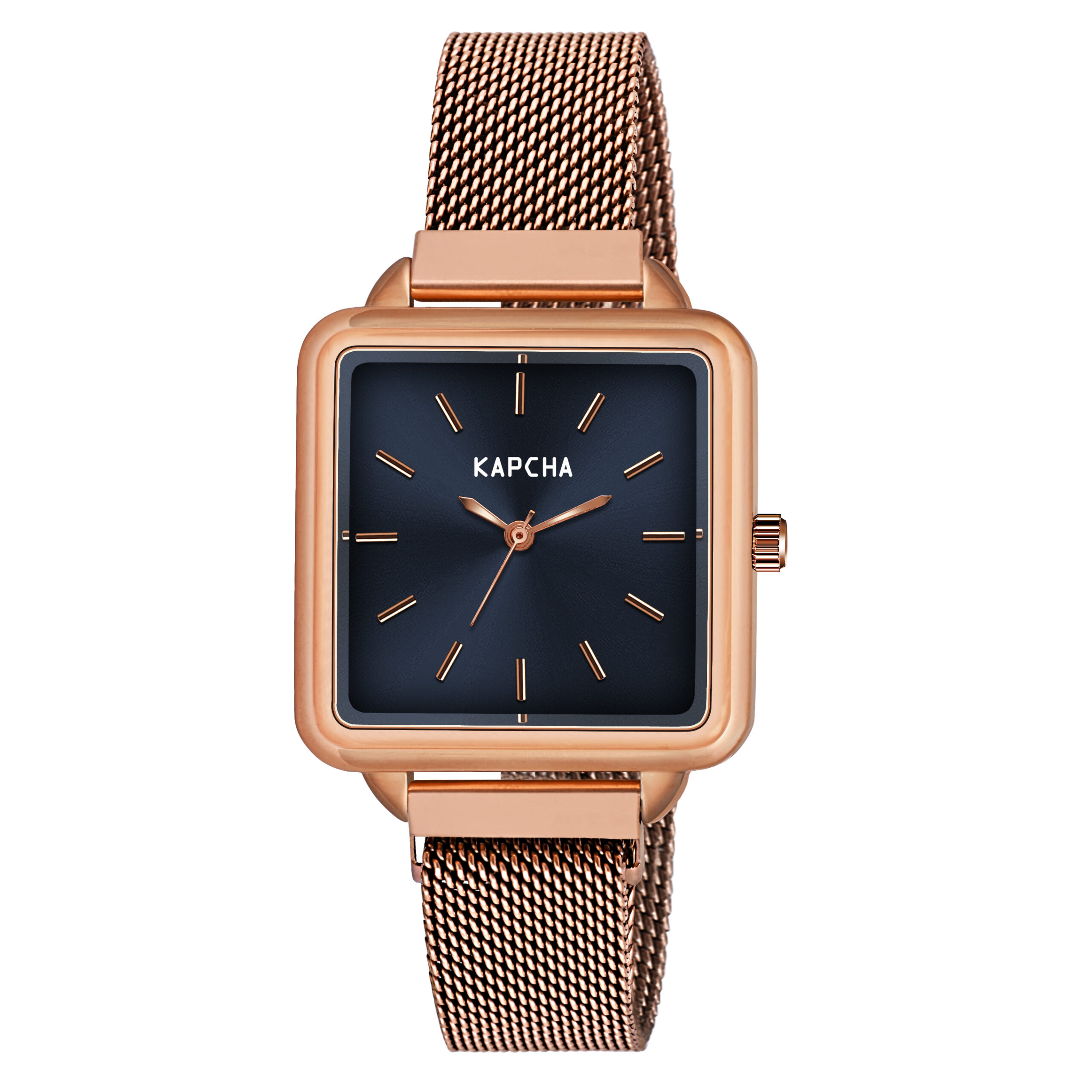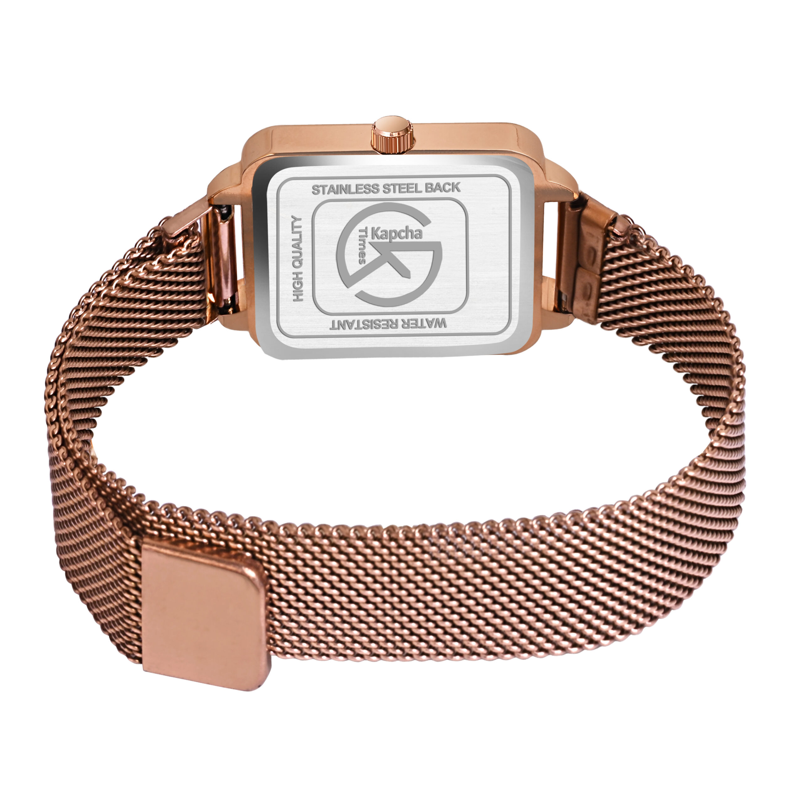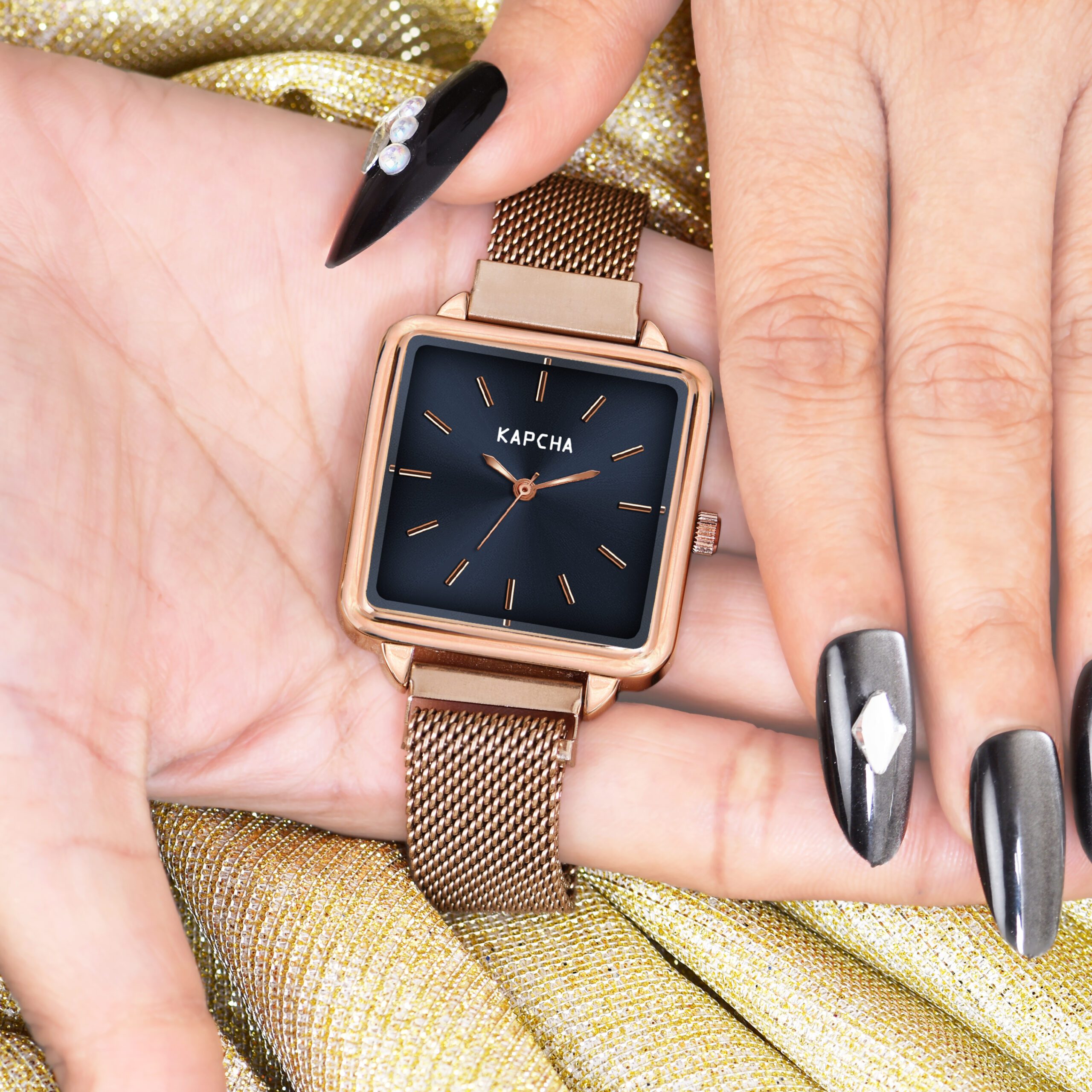 KAPCHA Women’s Analog Wrist Watch – Elegant Square Dial with Rose Gold Mesh Strap, Stylish Quartz (Black)