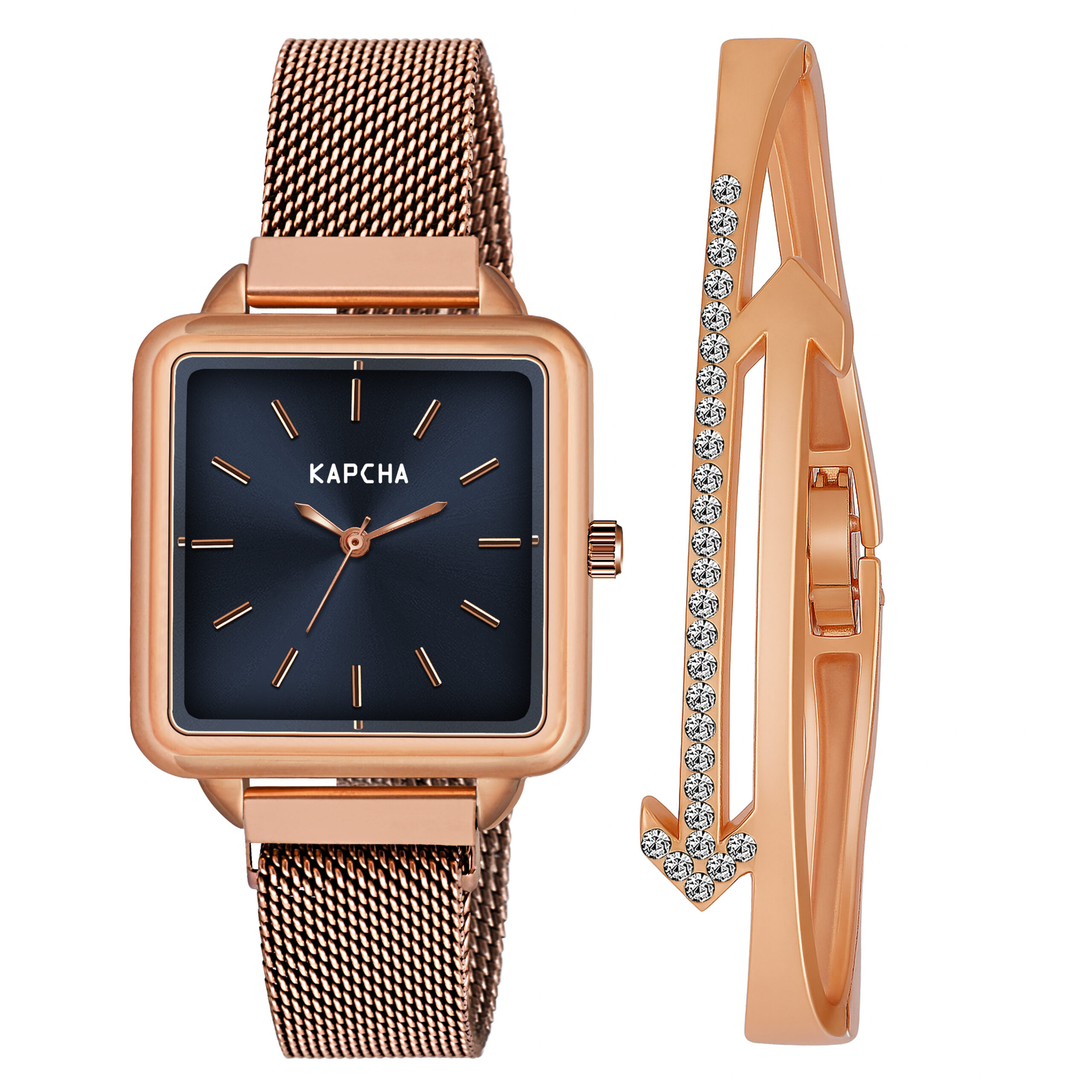 Elevate your wrist game with this sophisticated KAPCHA women’s square watch. The striking black dial offers a minimalist aesthetic that perfectly complements the luxurious rose gold mesh strap. Crafted from premium stainless steel, this elegant timepiece seamlessly blends modern design with classic sensibilities. The square case shape adds a contemporary twist to this dress watch, whilst the mesh strap ensures both style and comfort for all-day wear. This quartz-powered watch makes a stunning accessory for both formal occasions and everyday wear, adding a touch of refinement to any ensemble. The versatile design transitions effortlessly from day to evening, making it an essential addition to your accessory collection. The sleek combination of black and rose gold creates a timepiece that’s both fashionable and timeless.
