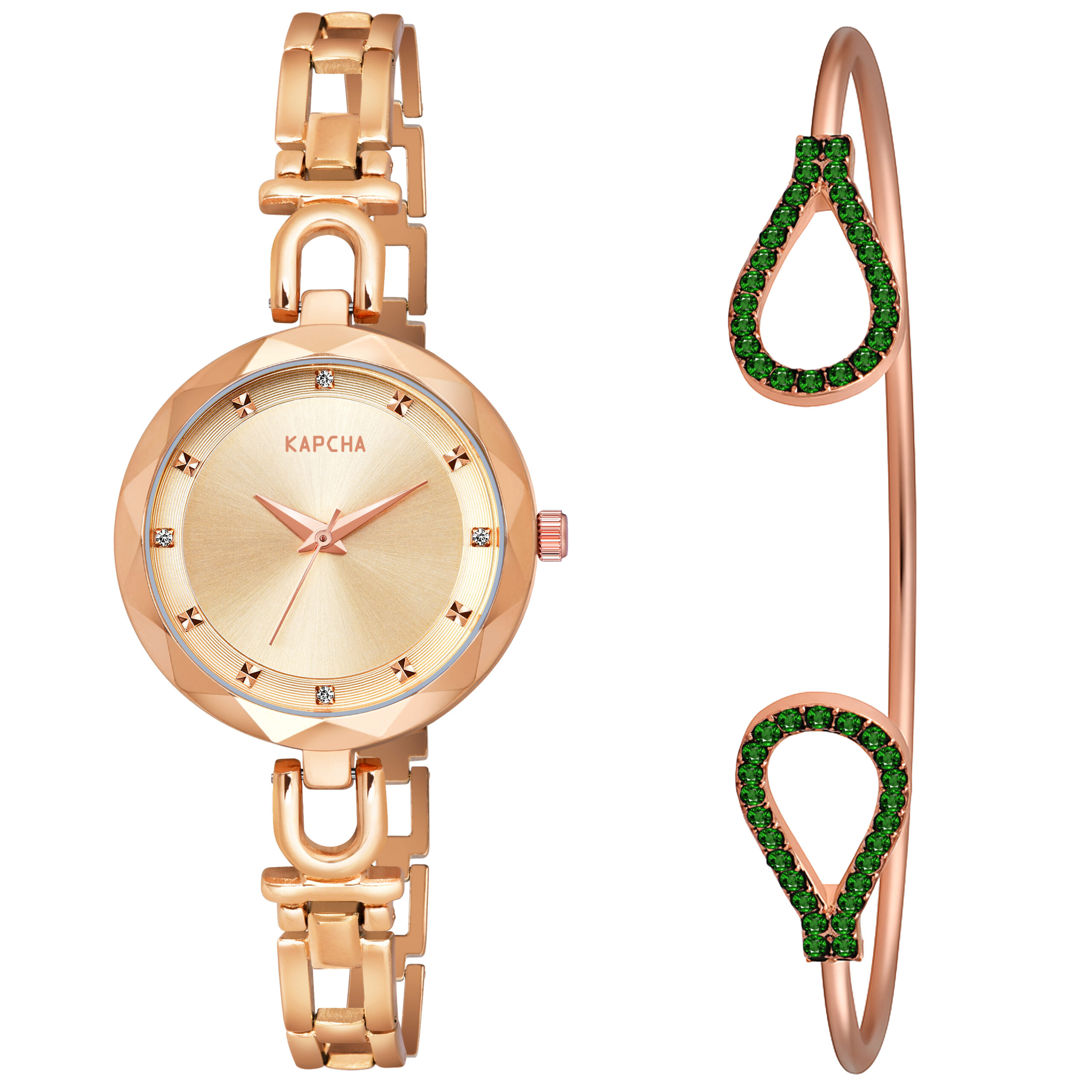 KAPCHA Women’s Watch and Bracelet Combo | Versatile Stylish Stainless Steel Strap Watch | Ideal for Casual and Formal Wear | Fashion Accessory | Anniversary Gift for Wife/Mom- Design 2